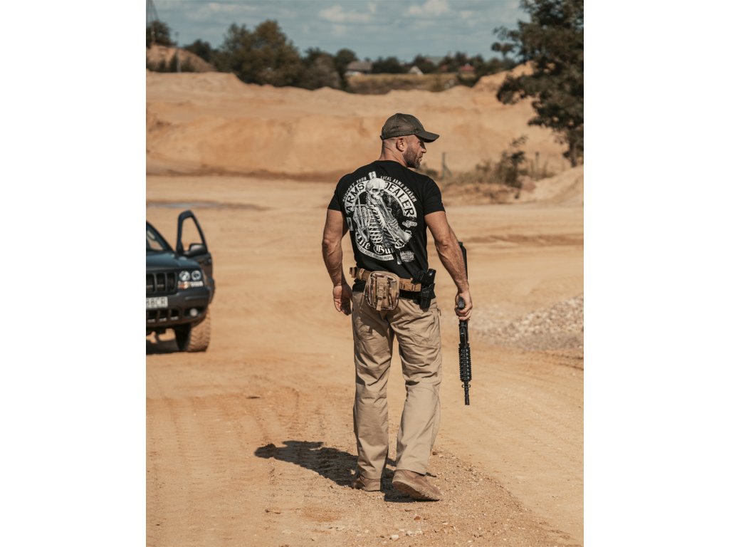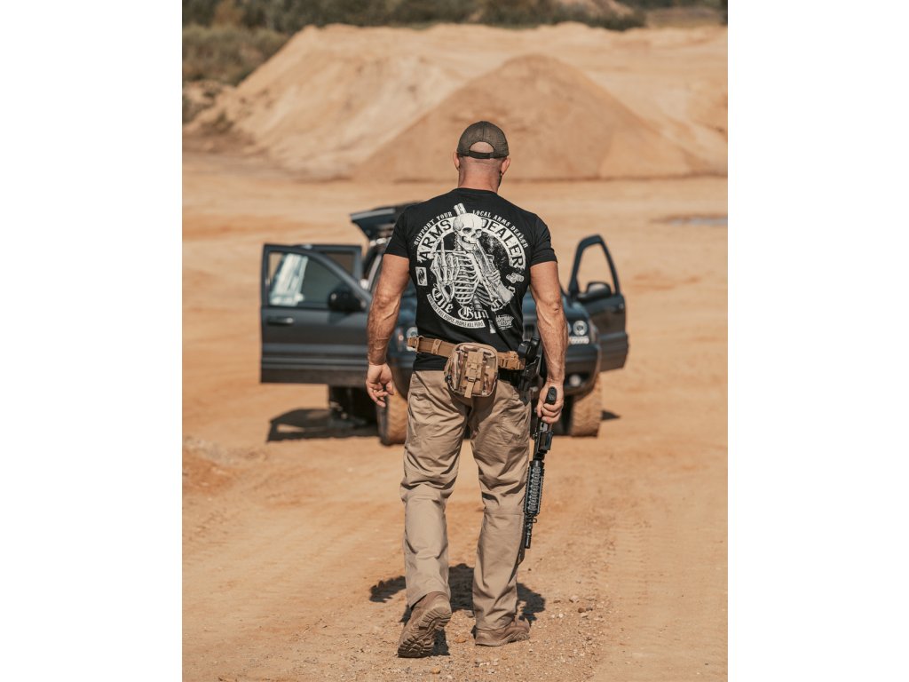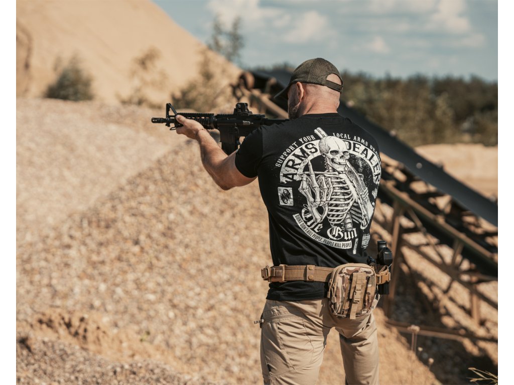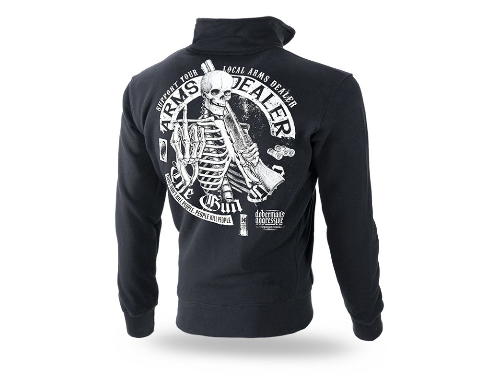 A pulóver alsó része és az ujjak elasztikus szegéllyel vannak ellátva. A pulóver kiváló minőségű pamutból készült. A pulóver hátulján egy nagy méretű minta található, amelyet egy fegyveres csontváz, valamint egy " Support your local arms dealer " felirat díszít. A pulóver elején egy kisebb méretű hasonló minta található.