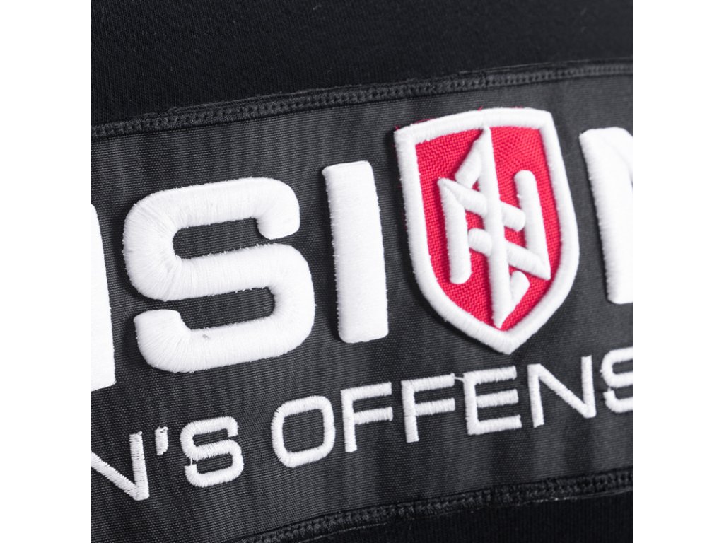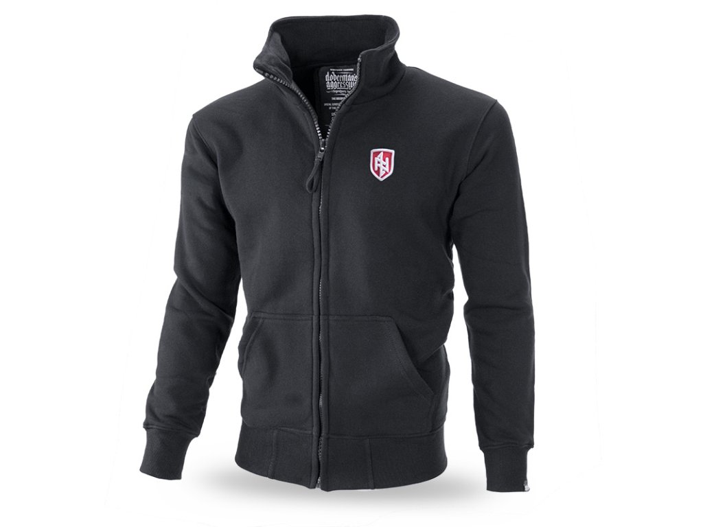 A pulóver alsó részén és az újjak végein elasztikus szegély található. A pulóver a DIVISION kollekció modellje. A pulóver mellkasán egy pajzs alakú 3D-s hímzés található, amely a cég logóját ábrázolja „DIVISION Doberman’s Offensive” felirattal kiegészítve. A 3D technológiának köszönhetően a pulóver nagyon atraktív.