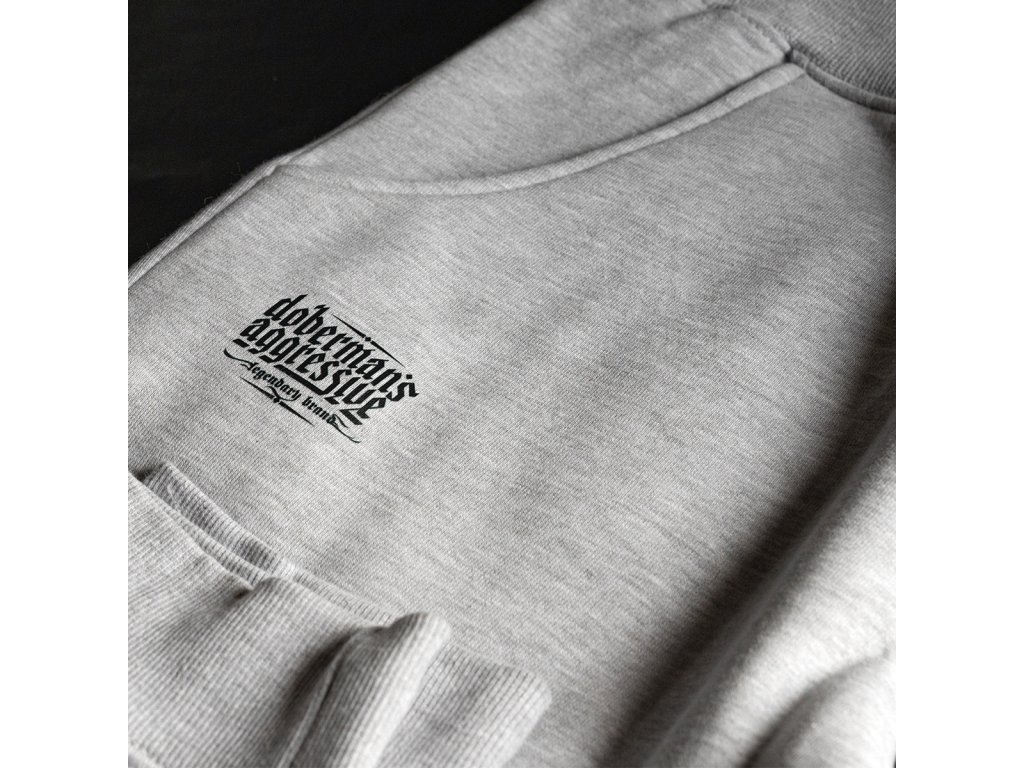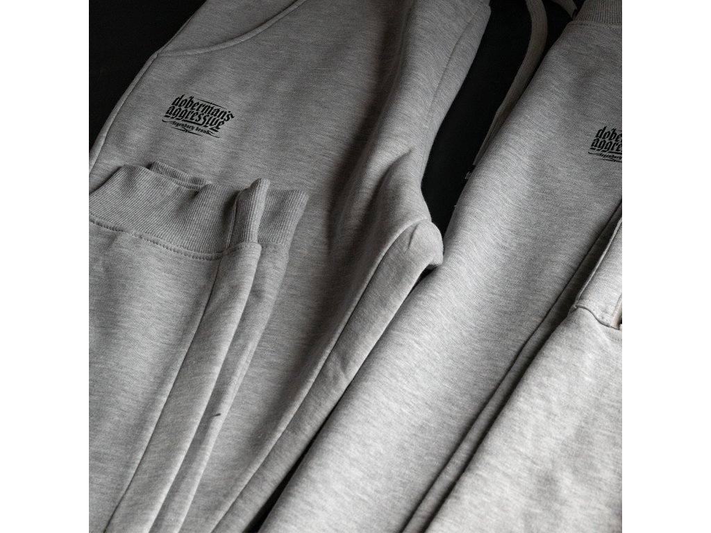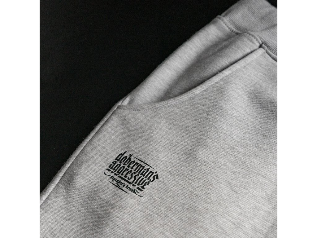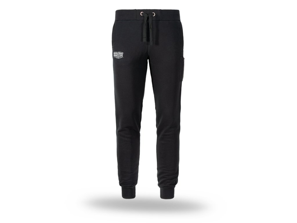 Durva szövésű pamut férfi melegítőnadrág, két oldalsó zsebbel és egy zsebbel a nadrág hátulján. A jobb oldalán egy kis monokróm Doberman's logó található.