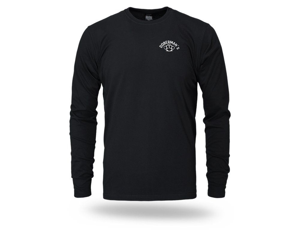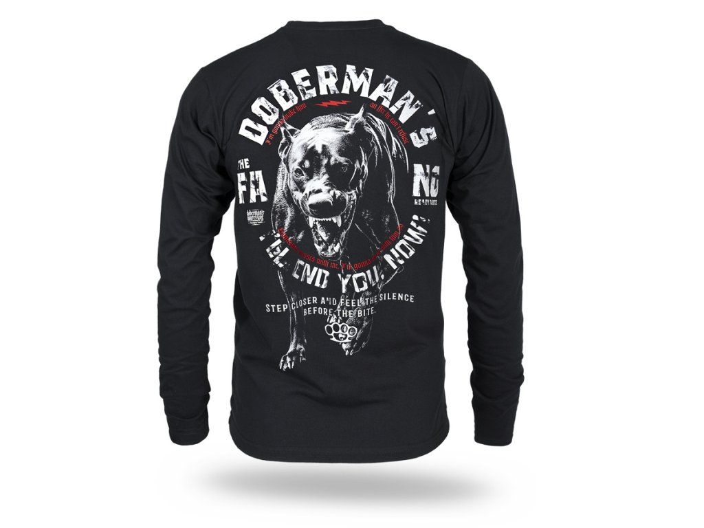 Hosszú ujjú modell kerek nyakkivágással és rugalmas passzéval. A hátoldalon egy nagyméretű, markáns grafika látható egy dinamikus, támadó pózban lévő agresszív dobermannról, erőteljes szlogenekkel kiegészítve, amelyek a design kompromisszummentes jellegét hangsúlyozzák. A mellrészen kisebb nyomat található a márkanévvel és a boxer motívummal. A megjelenés a Doberman’s Aggressive márkára jellemző, katonai ihletésű, határozott stílust tükrözi – azok számára, akik értékelik az erőteljes üzenetet és a karakteres dizájnt.
