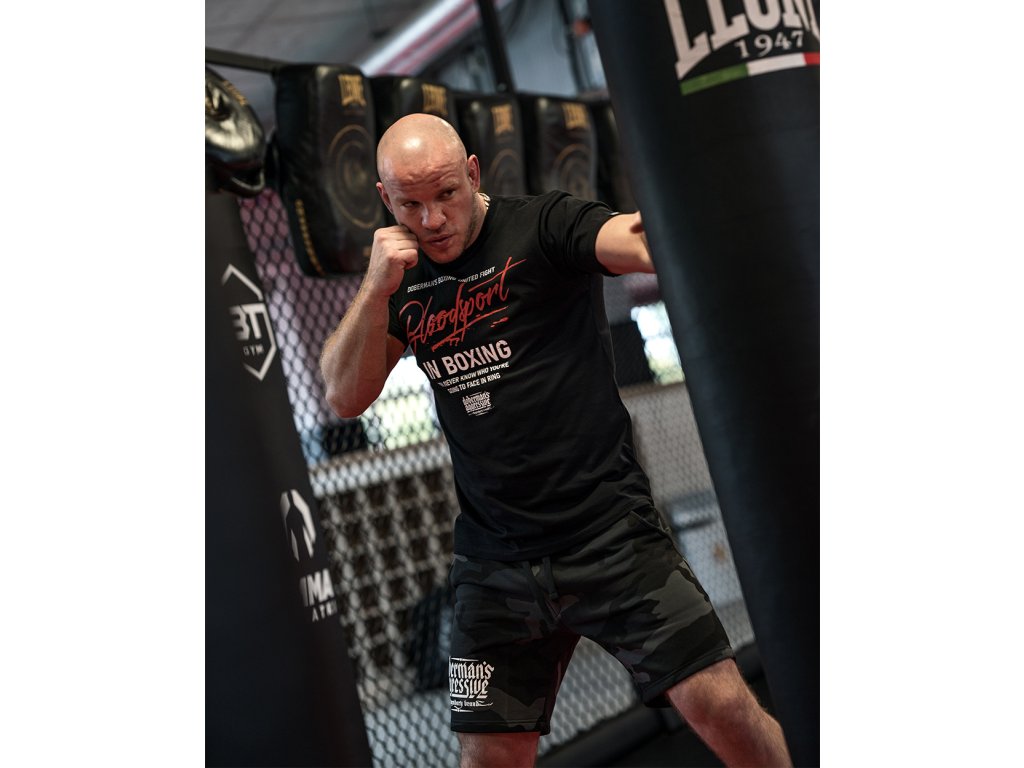 A pulóver fő motívuma a Bloodsport felirat, vércseppekkel kiegészítve. Visszafogott stílusú pulóver, erős üzenettel.