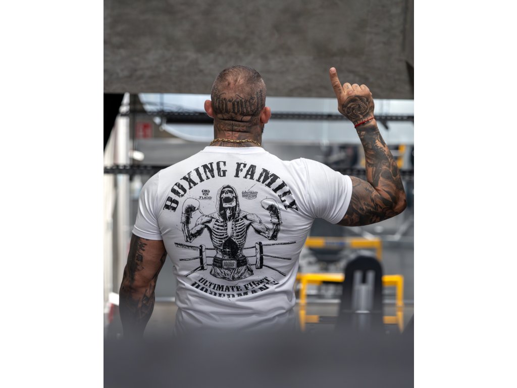 Hosszú ujjú póló harcművészetek rajongóinak. Az elején egy visszafogott "Boxing Family" logó található, míg a hátoldalon egy részletes grafika látható egy csontváz bokszolóról a ringben, a dinamikus "Boxing Family - Ultimate Fight - Doberman's" felirattal körülvéve. Kiváló minőségű anyagból készült, amely biztosítja a kényelmet és a tartósságot. Tökéletes választás boksz és küzdősportok kedvelőinek.