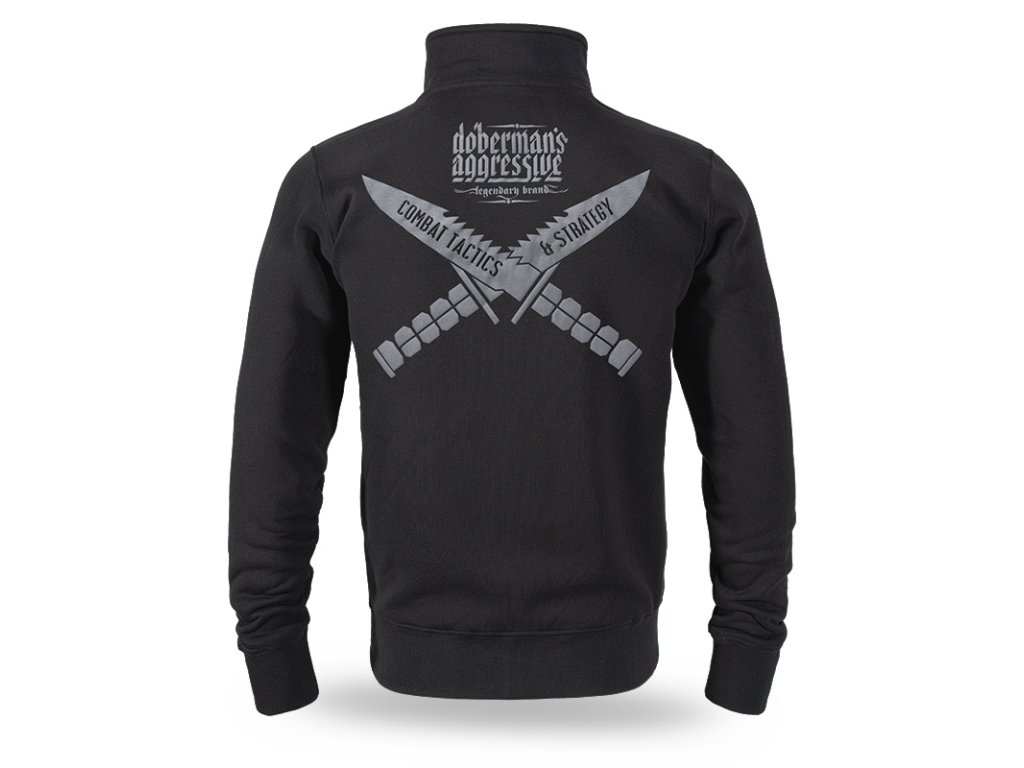 Kiváló minőségű anyagból készült, amely biztosítja a kényelmet és tartósságot. A hátoldalon nagy nyomat található, amely keresztbe tett taktikai késeket ábrázol „COMBAT TACTICS & STRATEGY” felirattal és a DOBERMANS AGGRESSIVE logóval. Az elülső oldal minimalista, további grafika nélkül. A nyomat 3D puff nyomtatási technológiával készült, amely kiemelkedő textúrát ad neki. A pulóver kényelmes zsebekkel és erős cipzárral rendelkezik.