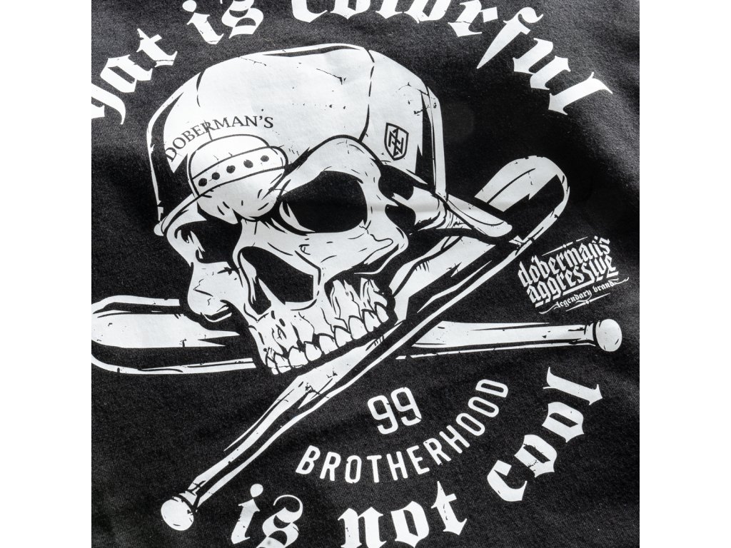 A trikó a Colorful Skull limitált edíció modellje, csak fekete és fehér színben kapható. A póló elején egy nagy méretű koponya és Doberman’s Aggressive logó található. A póló hátoldala felirat nélküli, kis méretű koponyával a bal oldalán.