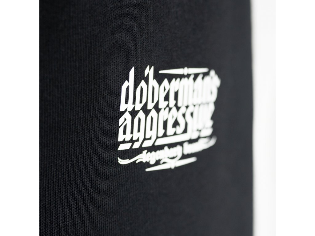 A nadrág kiváló minőségű pamutból készült, amely garantálja a kényelmes viseletet. A nadrág derekánál húzózsinórok találhatóak, amelyek lehetővé teszik a nadrág testreszabását. A nadrágon található húzózsinórokat Doberman's Aggresive logók díszítik. A nadrág jobb felső részén egy gumis márkajelzés található. A nadrág hátsó részén található zsebet céges logó díszíti.