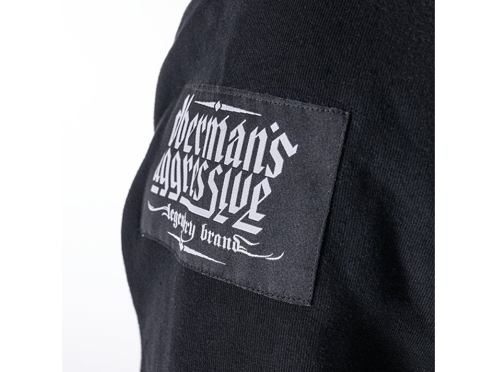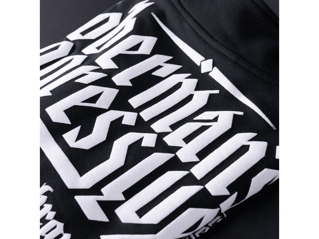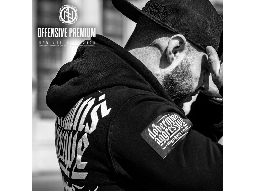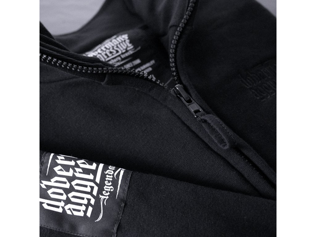 A pulóver elején két praktikus zseb található. A pulóver alsó részén és az újjak végein elasztikus szegély található. A pulóver belsejében egy nagy méretű Dobermans Aggressive logó található. A pulóver bal ujján egy céges logó található. A pulóver hátoldalát egy nagy méretű 3D-s nyomat díszíti. A pulóver elején nincs díszítés, kivéve a jobb vállon található Doberman’s Aggressive logót.