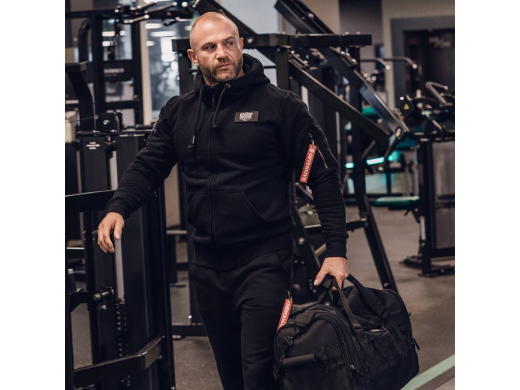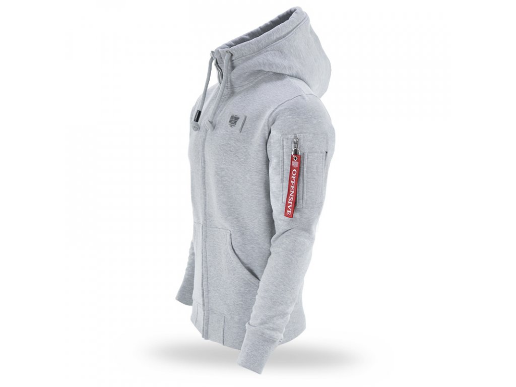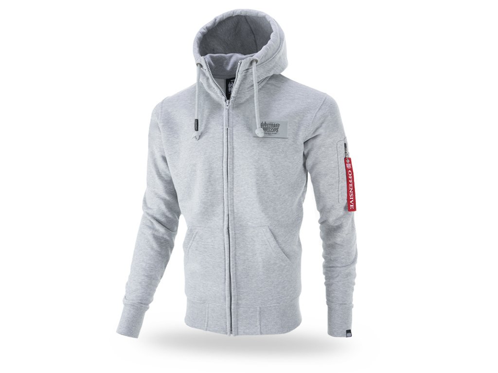 A pulóver kiváló minőségű pamutból készült. A pulóver bal ujján egy zseb található, nagy méretű piros kiegészítővel. Ennek a modellnek egy másik érdekes eleme a mellkason található tépőzáras céges logó. Az Offensive Performance kollekcióhoz tartozó pulóvert szilárd és széles húzózsinórok jellemzik.