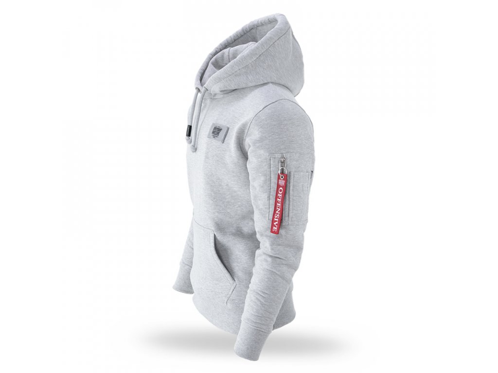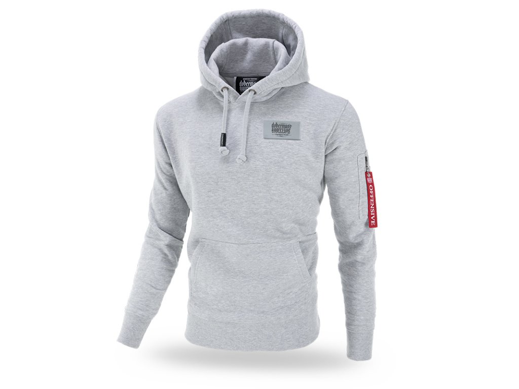 Ennek a modellnek egy másik érdekes eleme a mellkason található tépőzáras céges logó. Az Offensive Premium kollekcióhoz tartozó pulóvert szilárd és széles húzózsinórok jellemzik. Ez a termék az Offensive Performance kollekció része. Ebből a kollekcióból származó termékeket az ügyfél külön is kombinálhatja, vagy megvásárolhatja olcsóbban is az Offensive Performance csomagban. A vevő ennél a terméknél kérhet egy fekete alapon Doberman's Aggressive logó felvarrását a jobb ujjra. Személyre szabás lehetősége. Bővebben a "személyre szabás" lapon.
