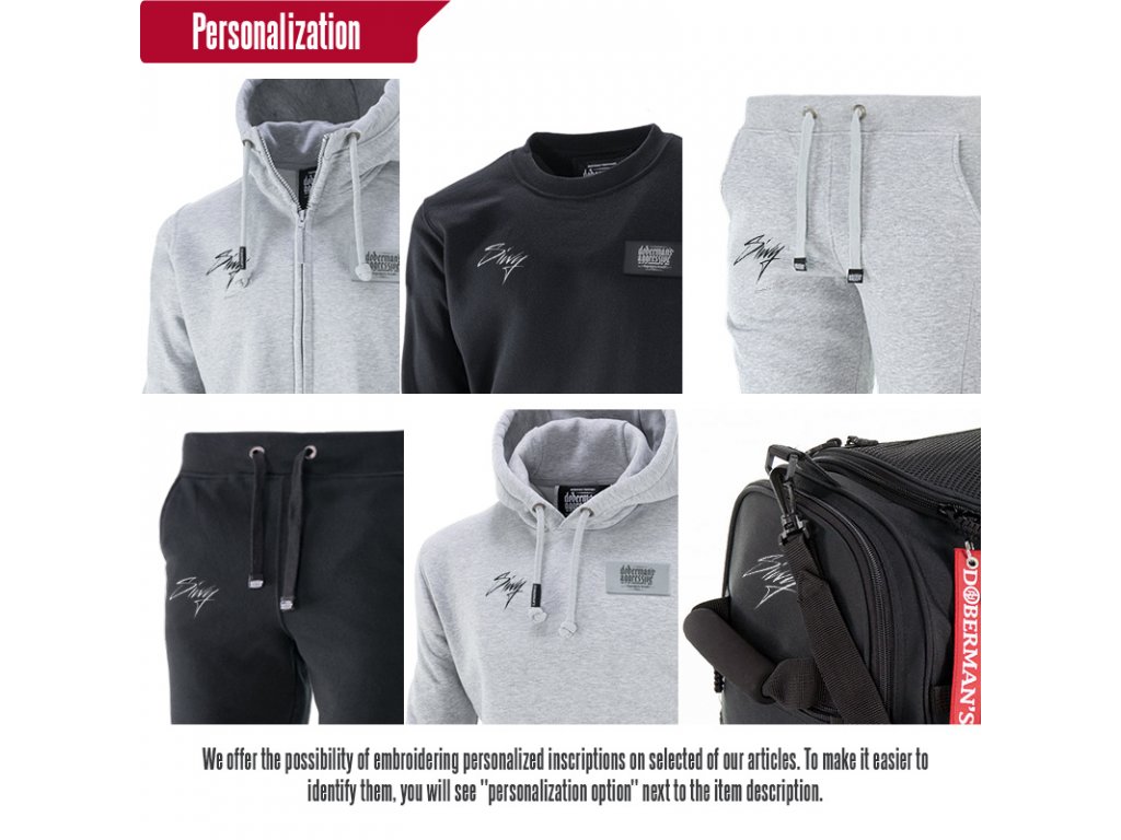 A nadrág derekánál húzózsinórok találhatóak, amelyek lehetővé teszik a nadrág testreszabását. A nadrágon található húzózsinórokat céges logók díszítik.