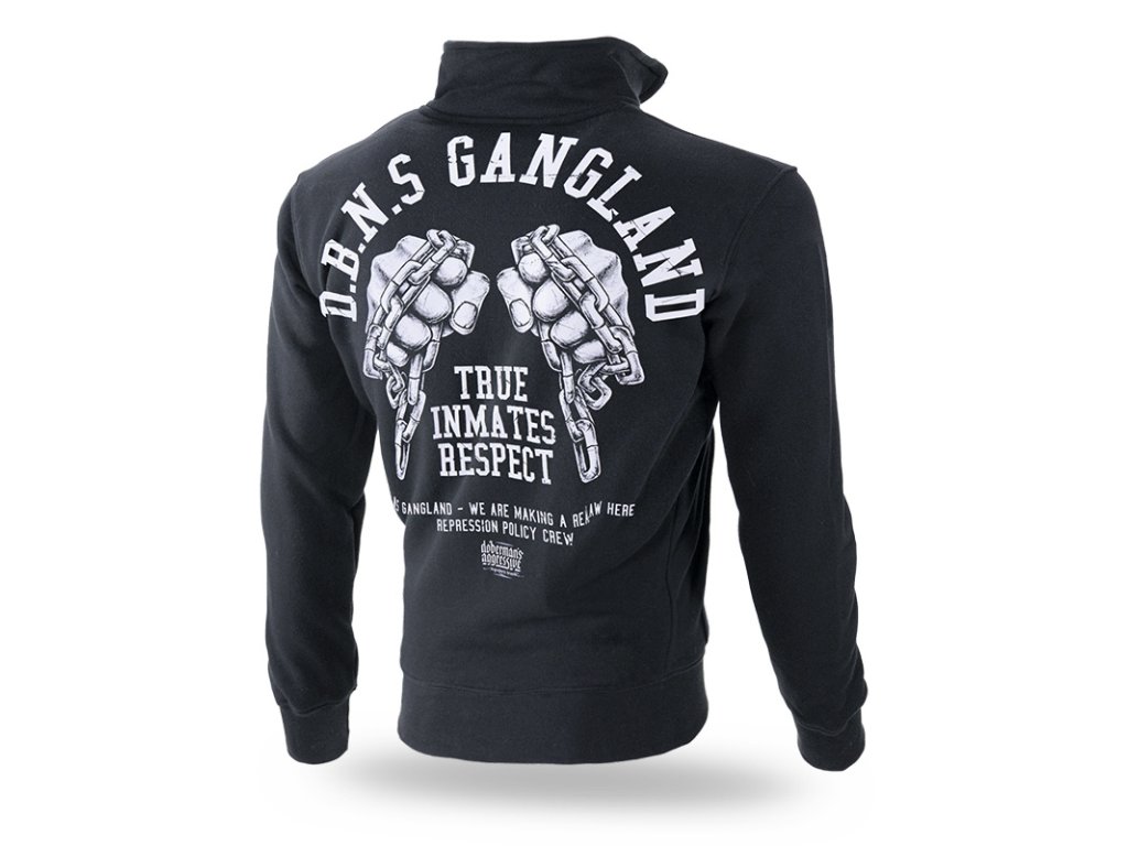A pulóver elején két praktikus zseb található. A pulóver alsó részén és az újjak végein elasztikus szegély található, bal ujján céges logóval. A Gangland modell hátoldalán a Doberman’s márkára jellemző jellegzetes minta található, amely egy összeszorított öklöt és láncot ábrázol. A pulóver elülső része felirat nélküli.
