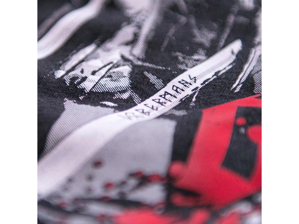 A pulóver kiváló minőségű pamutból készült, melynek súlya 320g. A pulóver elején két praktikus zseb található. A pulóver belsejében egy Dobermans Aggressive céges logó található. A pulóver bal vállán egy Legions felirat található. A pulóver hátoldalán egy nyomat található, amely két kardokkal és pajzsokkal felfegyverzett harcost ábrázol. A pulóver a Vikings kollekció modellje.