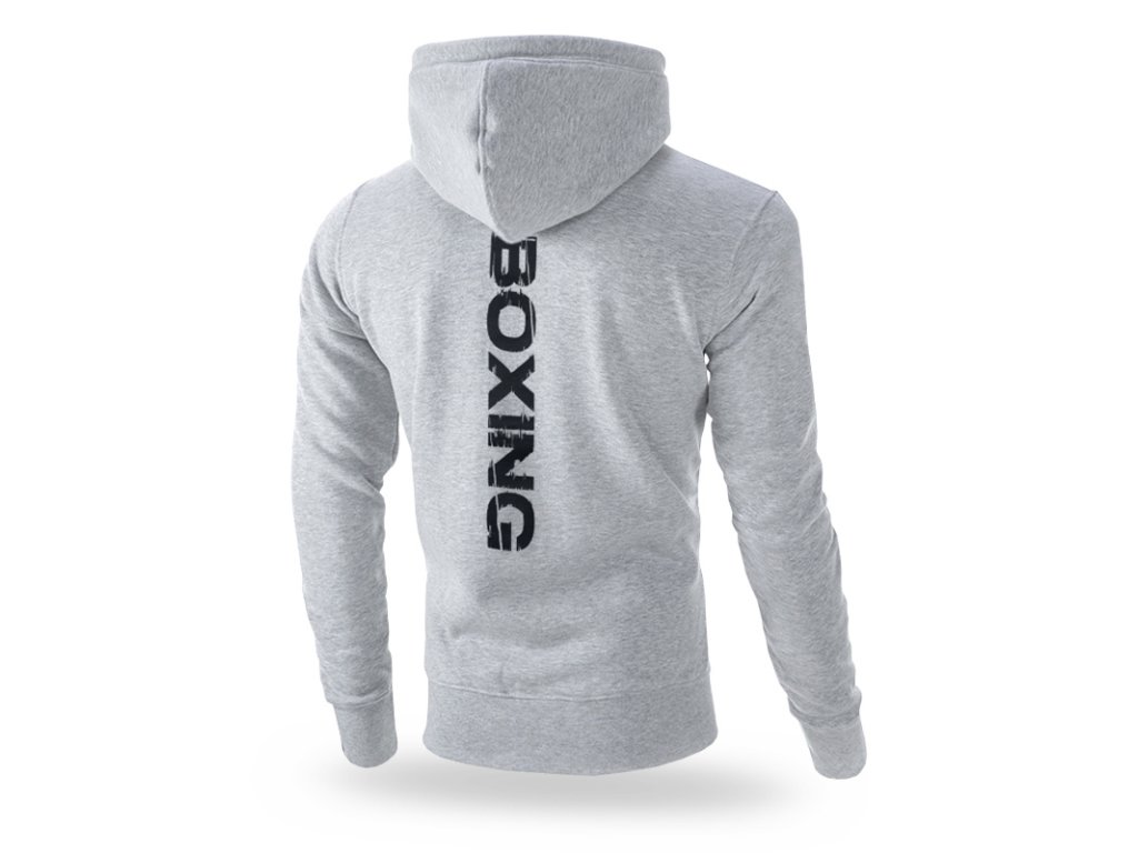A kapucni beállításához praktikus fűzők szolgálnak, végein fémből készült logókkal. A pulóver jobb ujján céges logó található. A pulóver elején egy nagy méretű BOXING nyomat található. A pulóver hátoldalán egy ismételt BOXING felirat és DOBERMAN'S logó található.