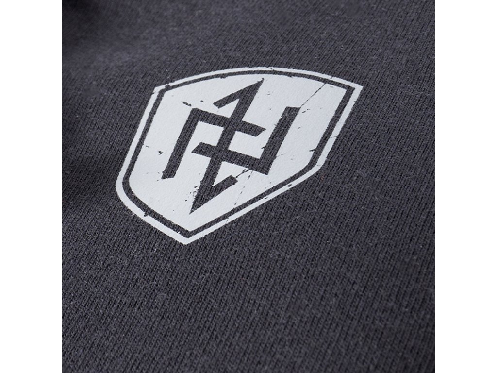 A pulóver meleg és kiváló minőségű pamutból készült. A bal ujjon egy kis címke található a márka logójával. A hátoldalon egy nagyméretű DOBERMAN'S Dominus Vitae Necisque felirat található, a mellkas bal oldalán pedig egy kis pajzs alakú lenyomat rúna emblémával.