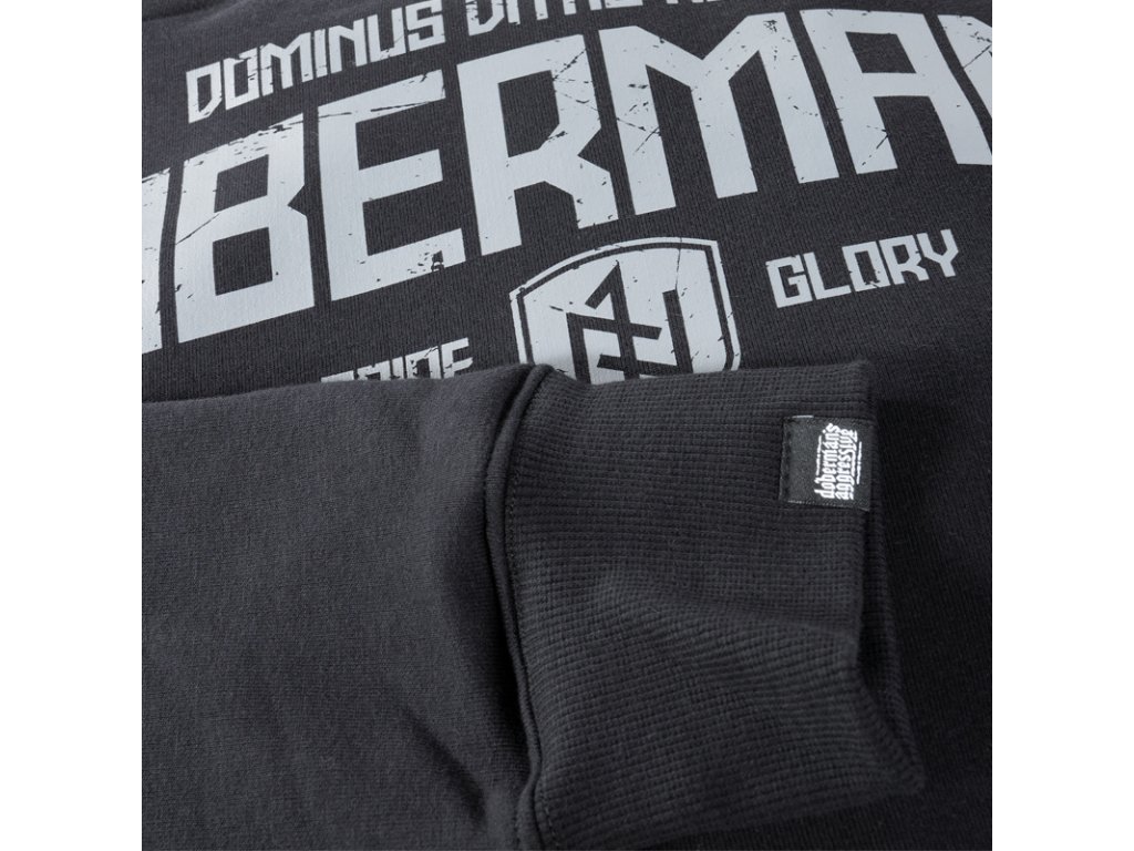 A pulóver meleg és kiváló minőségű pamutból készült. A bal ujjon egy kis címke található a márka logójával. A hátoldalon egy nagyméretű DOBERMAN'S Dominus Vitae Necisque felirat található, a mellkas bal oldalán pedig egy kis pajzs alakú lenyomat rúna emblémával.