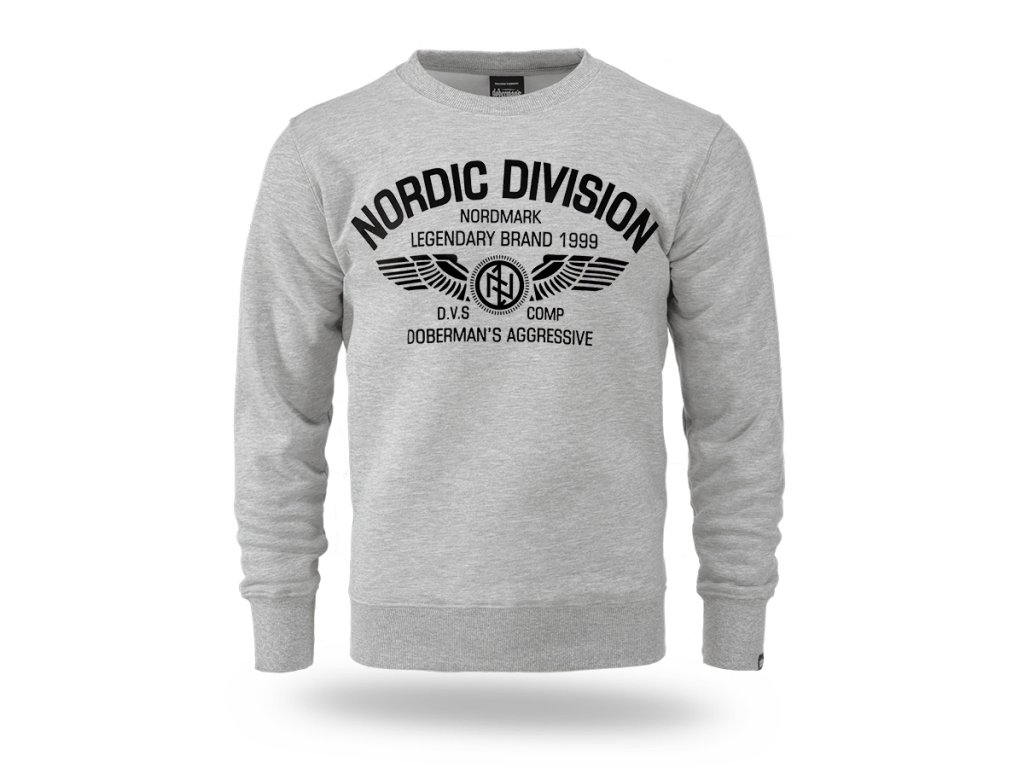 Kényelmes, klasszikus szabású modell kerek nyakkivágással, amelyet rugalmas passzé zár le. Az elején egy nagyméretű nyomat található „Nordic Division – Nordmark Legendary Brand 1999” felirattal, amelyet szárnyakat ábrázoló grafika és a márka emblémája egészít ki. A design északi és katonai stílus által inspirált, amely kiemeli a márka jellegzetes és könnyen felismerhető karakterét. Az ujjak és az alsó rész rugalmas passzéval készültek, így biztosítva a megfelelő illeszkedést és a kényelmes mindennapi viseletet.