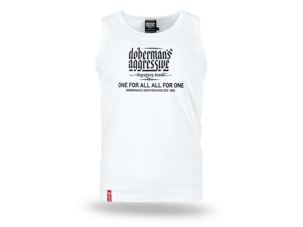 Kerek nyakkivágású, lazább szabású modell, amely kényelmes viseletet és teljes mozgásszabadságot biztosít. Az elején markáns nyomat található a „Doberman’s Aggressive – legendary brand” logóval és a „One for all, all for one – Doberman’s Brotherhood est. 1999” szlogennel, amely a márka identitását és karakterét hangsúlyozza. Az egyszerű, funkcionális kialakítás ideális sportoláshoz és mindennapi viselethez egyaránt.