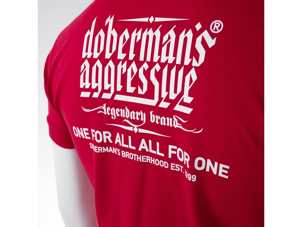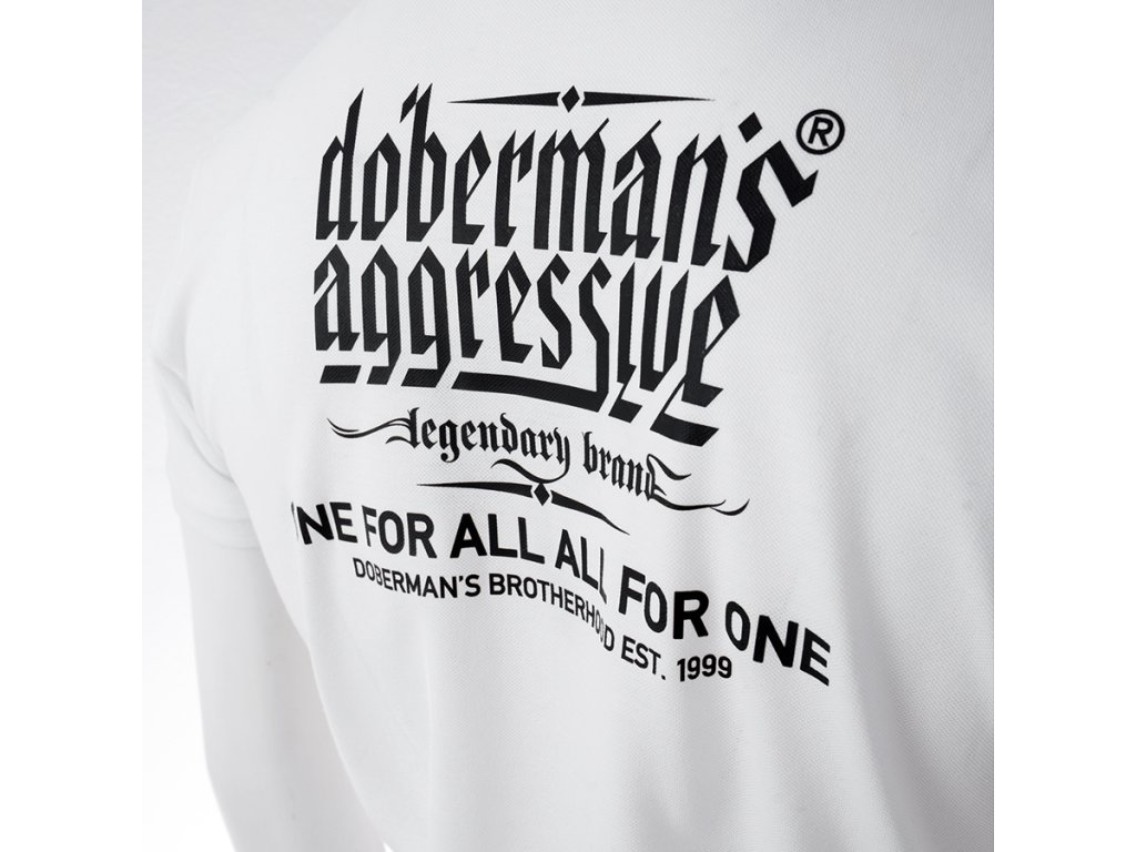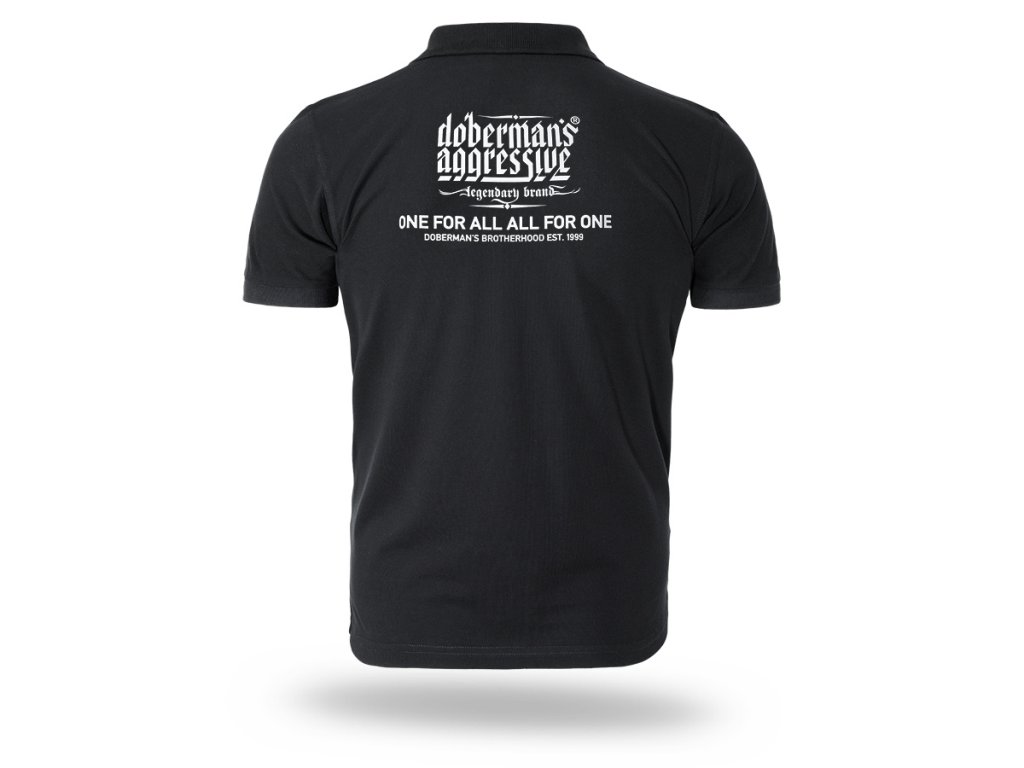 Gallérral és gombos záródással készült modell, amely kényelmes viseletet és rendezett megjelenést biztosít. Az elején, a bal mellrészen visszafogott márkalogó található, míg a hátoldalt nagyobb nyomat díszíti a „Doberman’s Aggressive – legendary brand” logóval és a „One for all, all for one – Doberman’s Brotherhood est. 1999” szlogennel, amely a márka karakterét és identitását hangsúlyozza. A szabás a sportos kényelmet erőteljes üzenettel és részletgazdag kidolgozással ötvözi.
