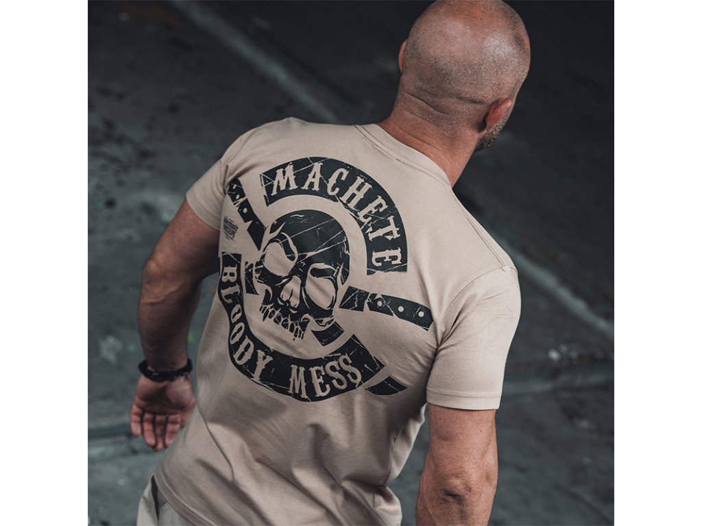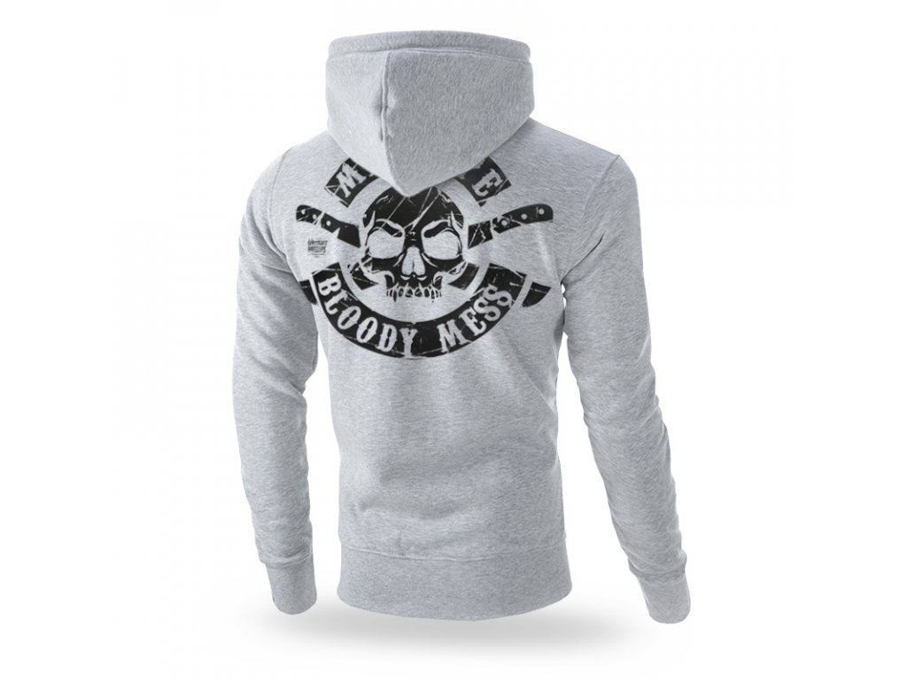 A pulóver bal ujján Doberman's Aggressive logó található. A kapucnis pulcsi hátulján egy kör alakú nyomat található, amely egy koponyát és egy MACHETE BLOODY MESS feliratot, valamint egy kisebb DOBERMAN'S logót ábrázol. A pulóver hátoldalán egy kisebb méretű identikus nyomat található.
