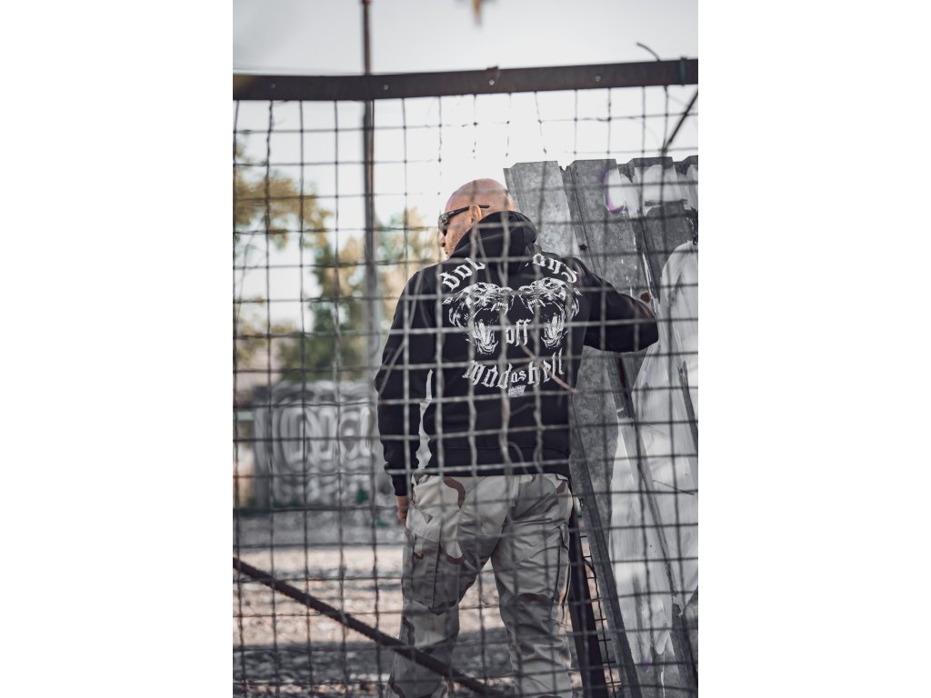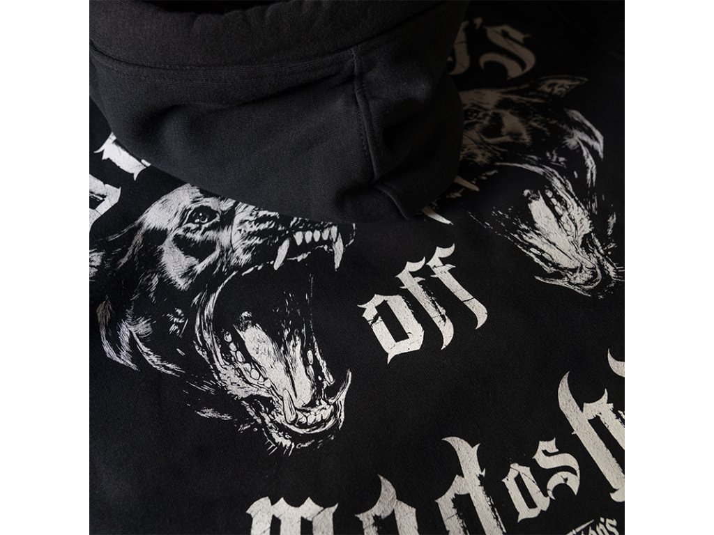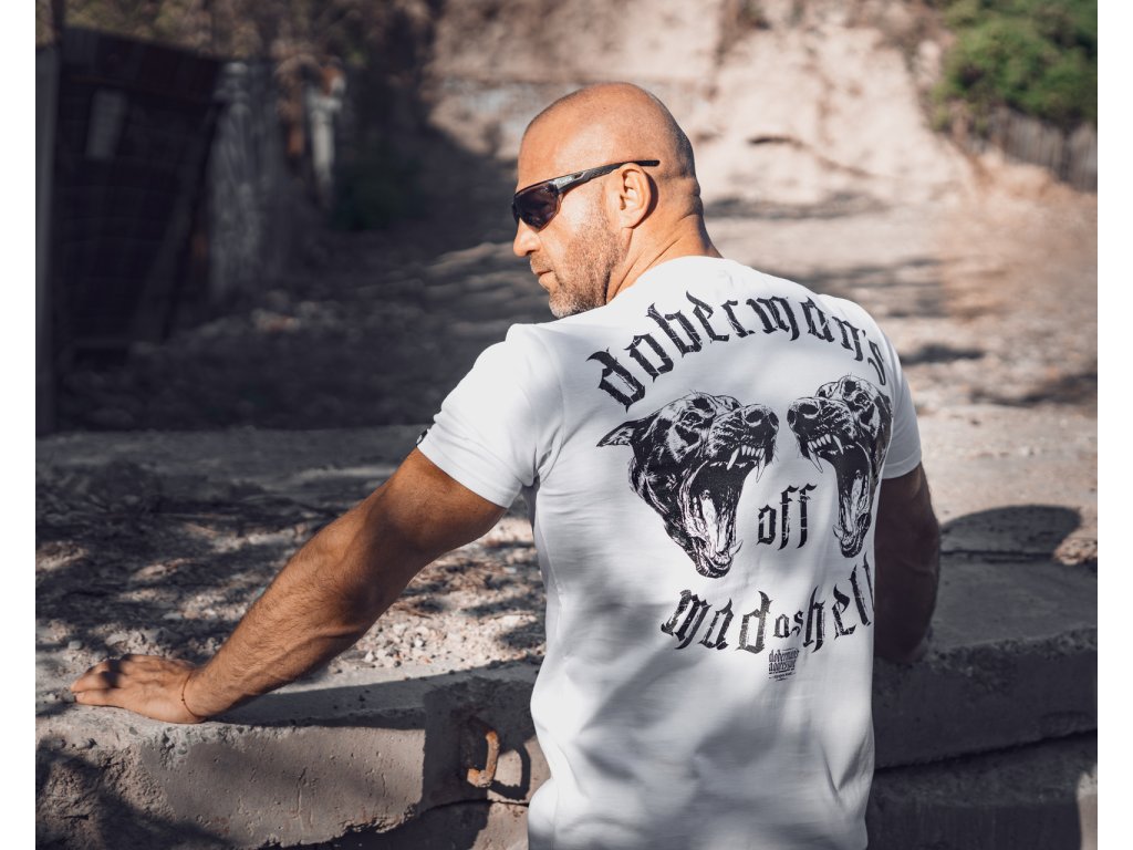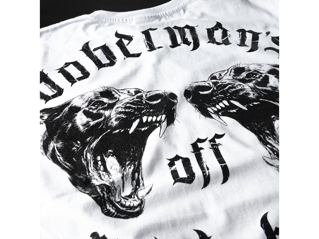 A modell hátulján merész nyomat található két feldühödött dobermannal és a „Dobermans off mad as hell” szlogennel. Elöl egy kisebb nyomat látható ugyanazzal a grafikai motívummal.