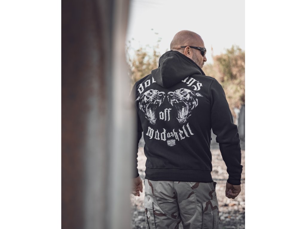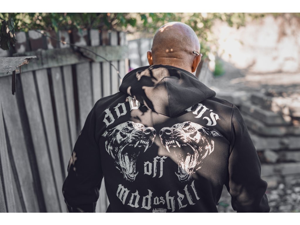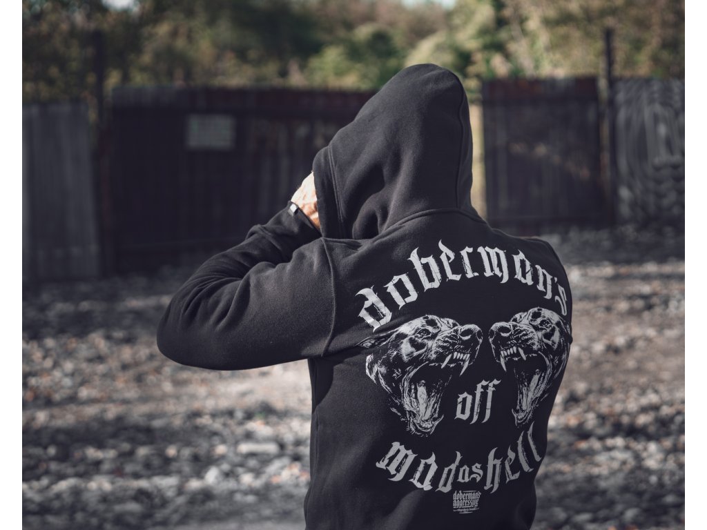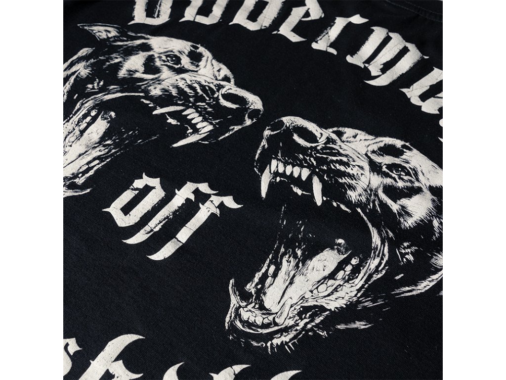 A modell hátulján merész nyomat található két feldühödött dobermannal és a „Dobermans off mad as hell” szlogennel. Elöl egy kisebb nyomat látható ugyanazzal a grafikai motívummal.