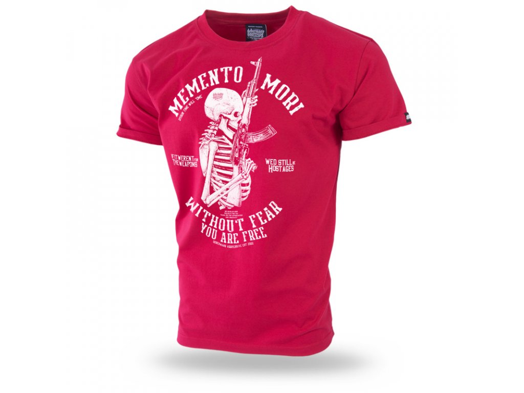 A póló bal ujján egy kis címke található a márka logójával. A póló elején egy emberi csontvázat ábrázoló minta látható, egy MEMENTO MORI WITHOUT FEAR YOU ARE FREE felirattal kiegészítve.