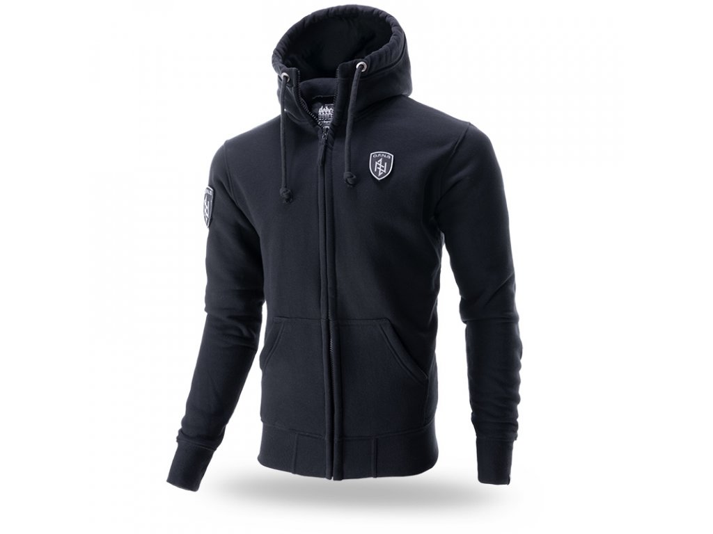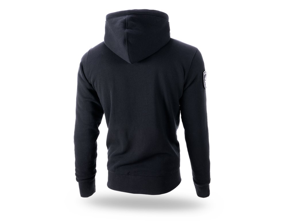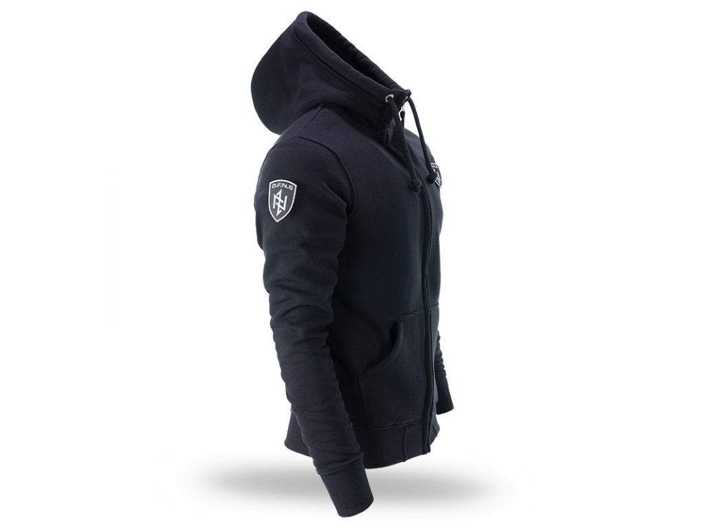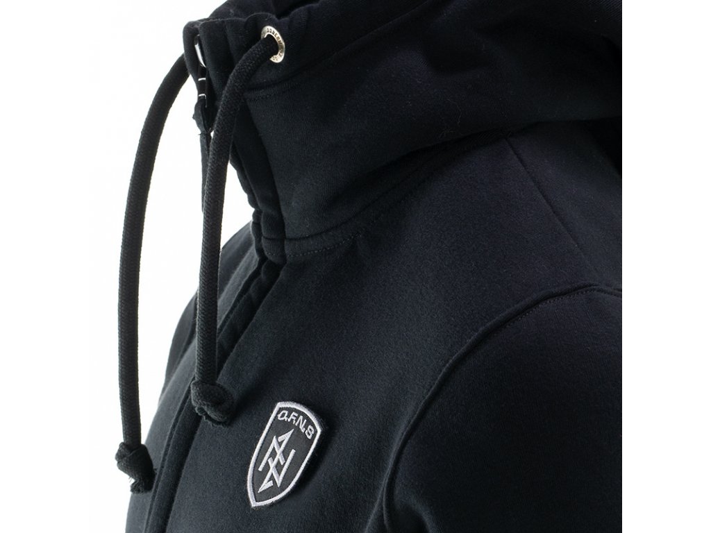 A pulóver elején két praktikus zseb található. A pulóver alsó részén és az újjak végein elasztikus szegély található, bal ujján céges logóval. A kapucni beállításához praktikus fűzők szolgálnak, végein fémből készült céges logókkal. A pulóver az O.F.N.S. Shield kollekció modellje, nagy méretű pajzzsal díszítve.