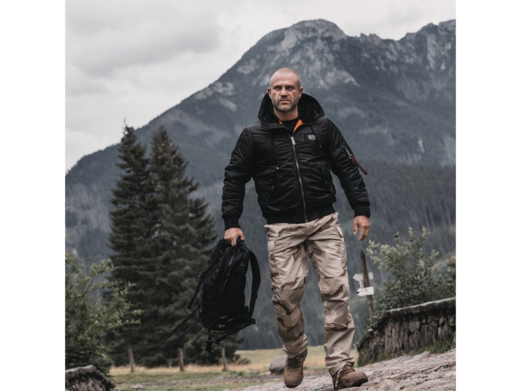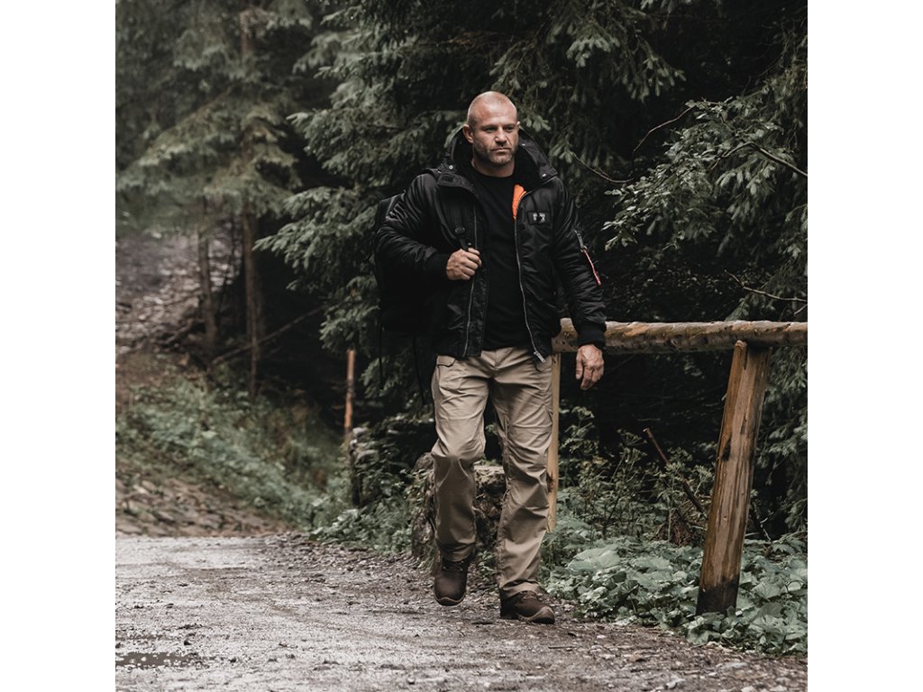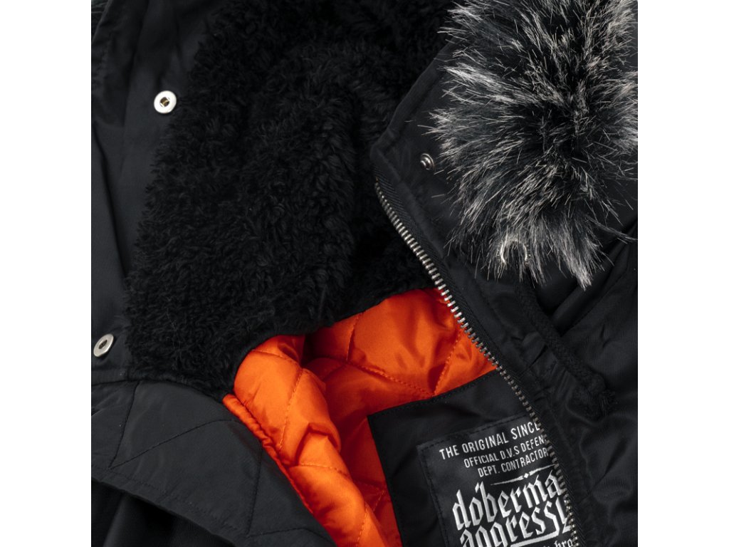 A kabát vízálló, szigetelt és narancssárga béléssel rendelkezik. A kabát kapucnija levehető szőrmével és állítható húzózsinórral van ellátva. A kabáton két cipzáras belső zseb található. A kabát elején céges logóval díszített tépőzáras hímzés van. A kabát bal ujján piros OFFENSIVE kiegészítő található.