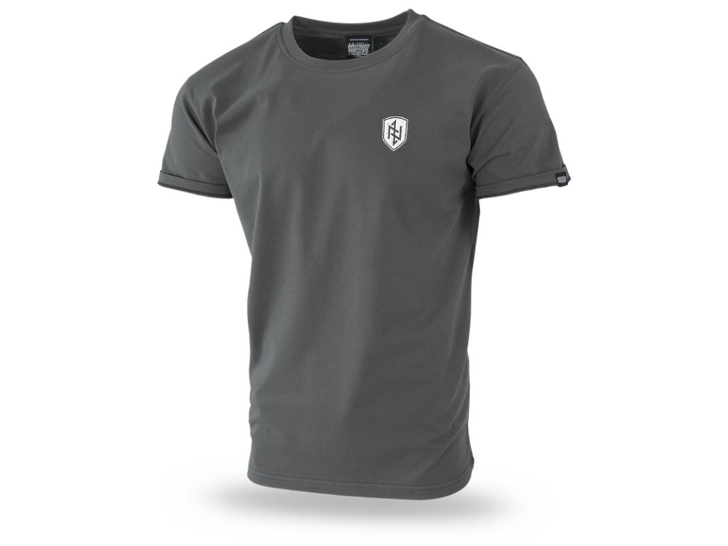 Klasszikus szabású férfi póló, amely kiváló minőségű pamutból készült. A póló bal ujján egy kis méretű céges logó található. A hátoldalon pajzsminta és egy nagy DOBERMAN'S Dominus Vitae Necisque felirat látható. A mellkas bal oldalán egy kis pajzs lenyomat található, rúna emblémával.