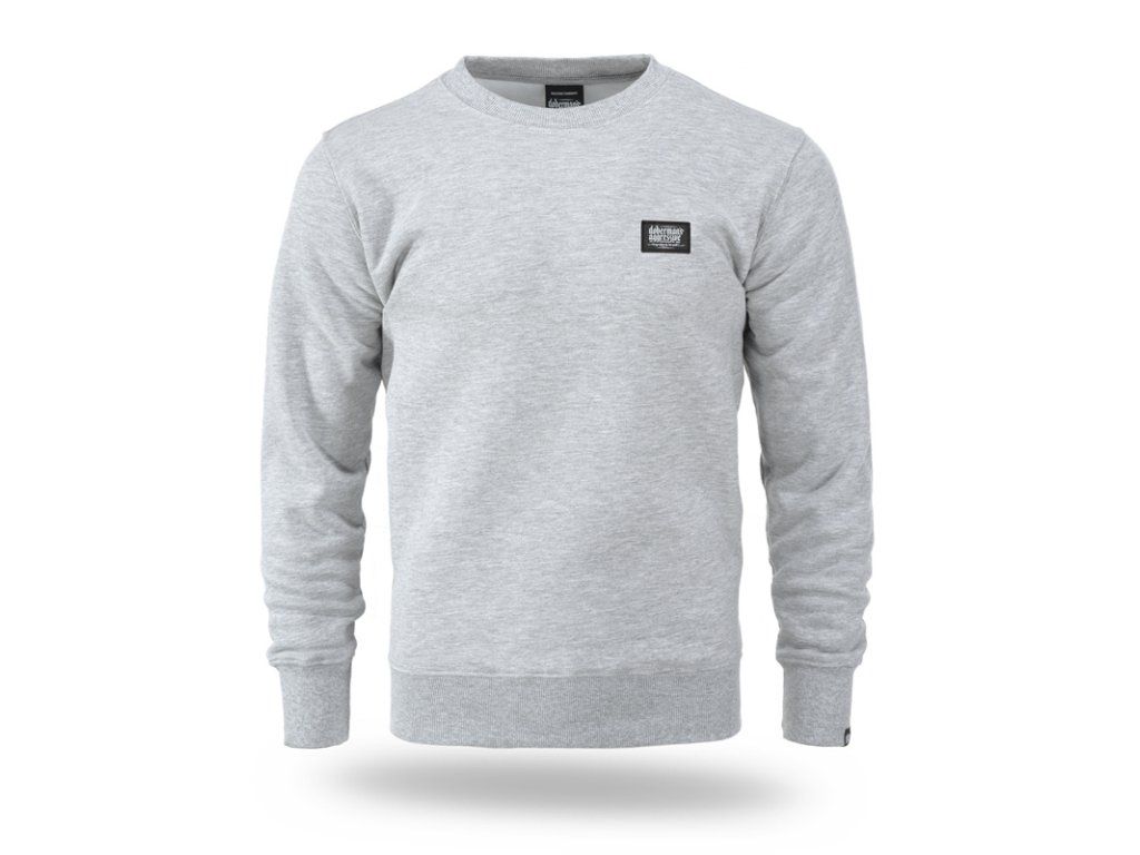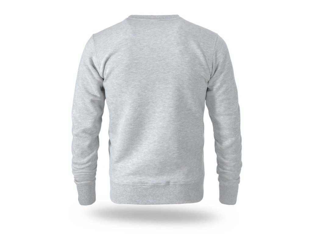 Klasszikus pulóver egyenes szabással, kapucni nélkül, kerek nyakkivágással és bordázott mandzsettával és alsó szegéllyel.