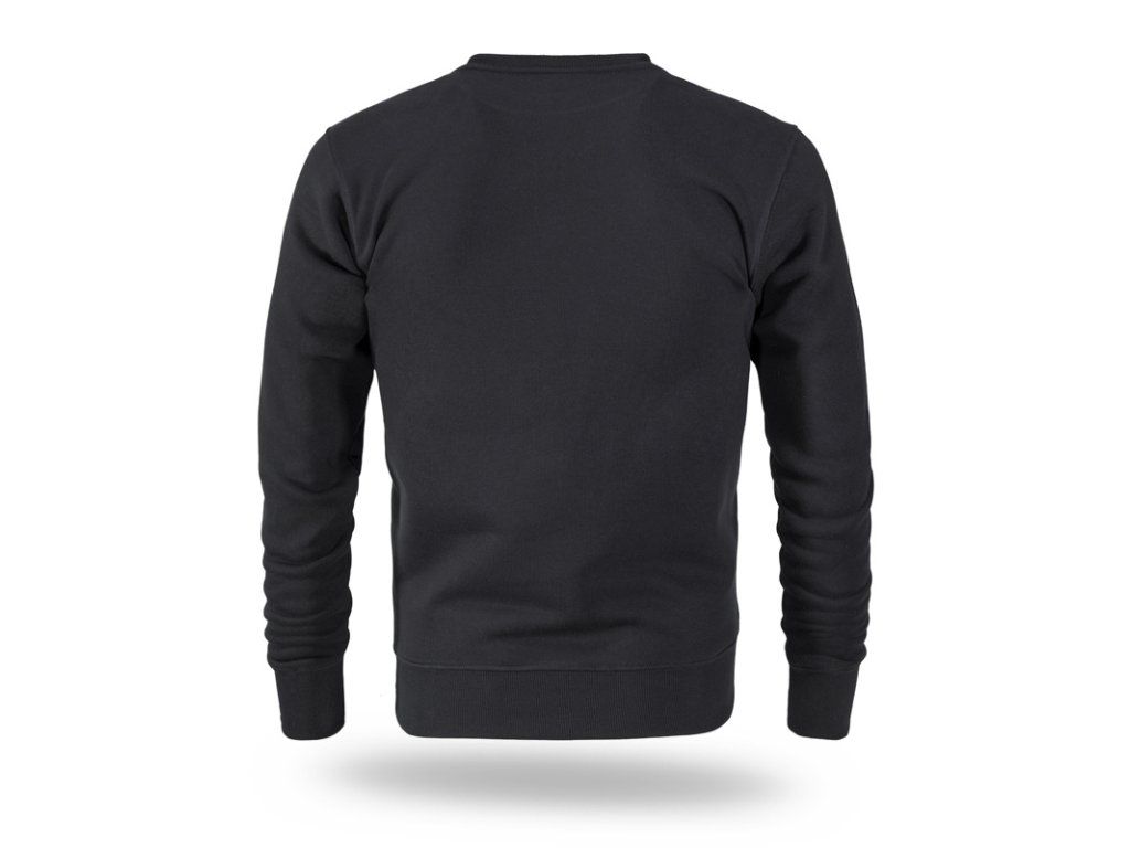 Klasszikus pulóver egyenes szabással, kapucni nélkül, kerek nyakkivágással és bordázott mandzsettával és alsó szegéllyel.