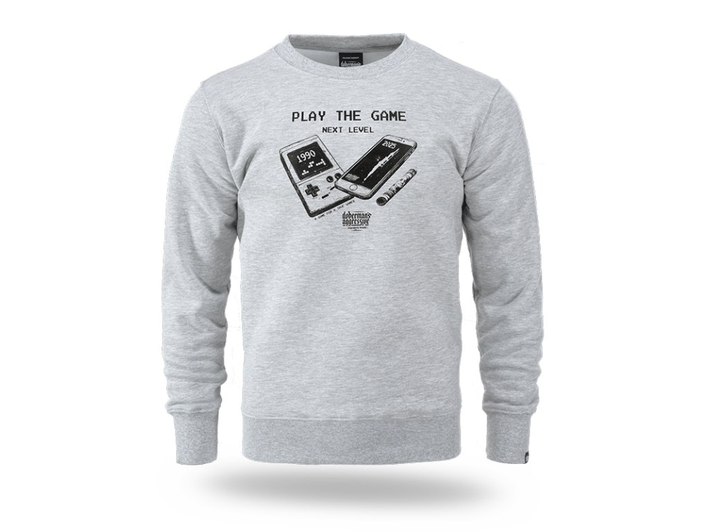 Kényelmes pulóver kiváló minőségű pamutból. Az elején egy nagy retro stílusú nyomat található, amely két játékkonzolt ábrázol – egy klasszikus kézi konzolt 1990-ből és egy modern okostelefont 2025-ből. A dizájnt a „PLAY THE GAME – NEXT LEVEL” felirat egészíti ki, amely a videojáték-technológia fejlődésére utal. A modell rugalmas bordázott mandzsettával rendelkezik az ujjakon és az alsó szegélyen.