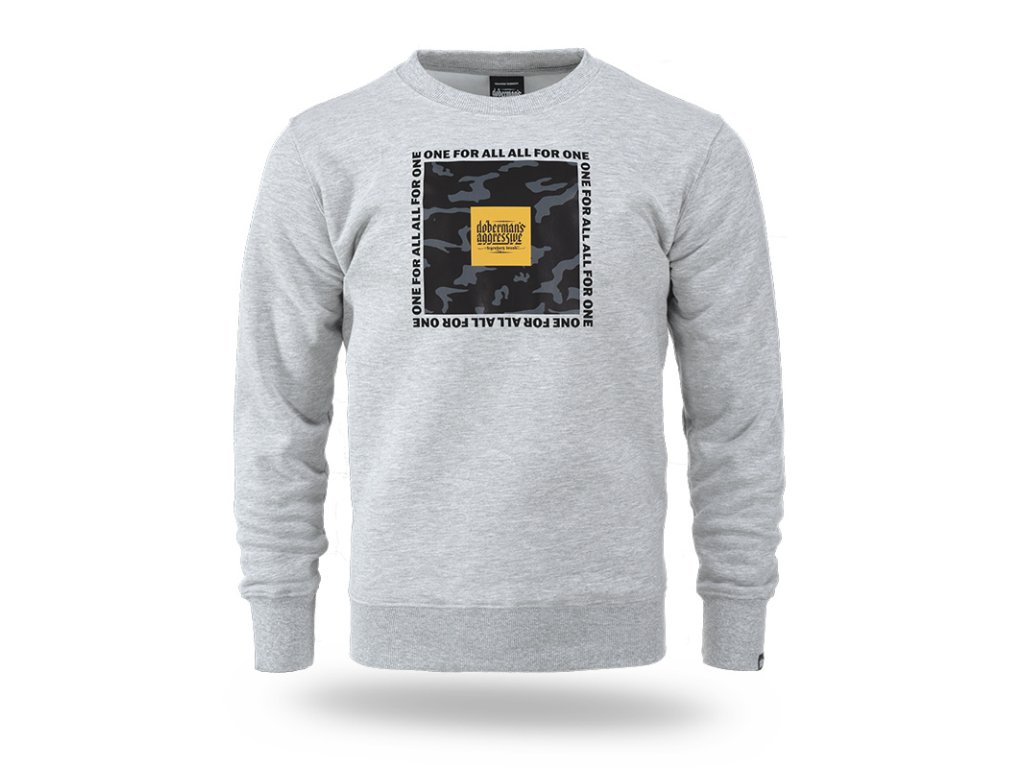 A modell kiváló minőségű pamutból készült, amely kényelmet és tartósságot biztosít. Az elején egy feltűnő négyzet alakú nyomat található álcázó mintával és kontrasztos színű márkalogóval. A nyomat körül a „ONE FOR ALL, ALL FOR ONE” felirat kiemeli a pulóver egyedi karakterét. Az ujjak és az alsó rész rugalmas passzéval vannak ellátva.