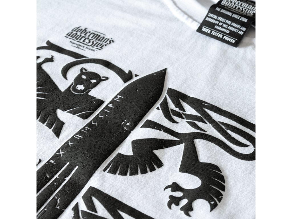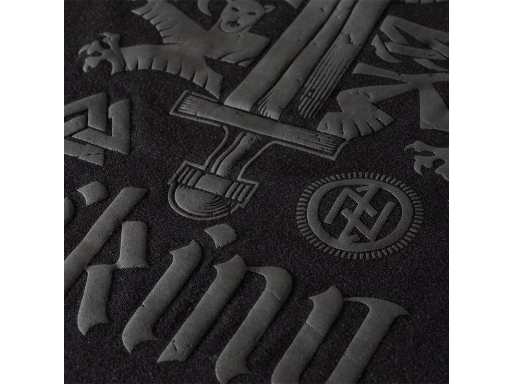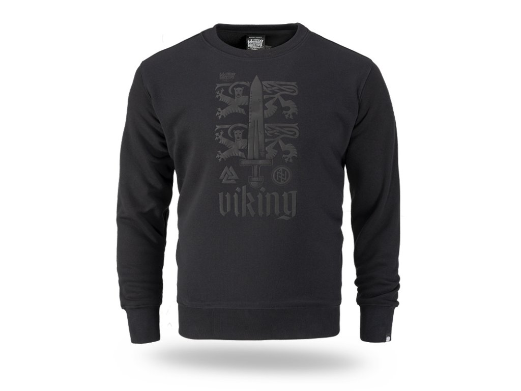 Klasszikus pulóver kiváló minőségű pamutból. Az elején egy nyomat látható, amely egy nagy kardot ábrázol két heraldikai oroszlán háttérében, és északi mitológiából inspirált szimbólumokkal, valamint a „Viking” felirattal van körülvéve. A dizájn az északi harcosok erejére és örökségére utal.