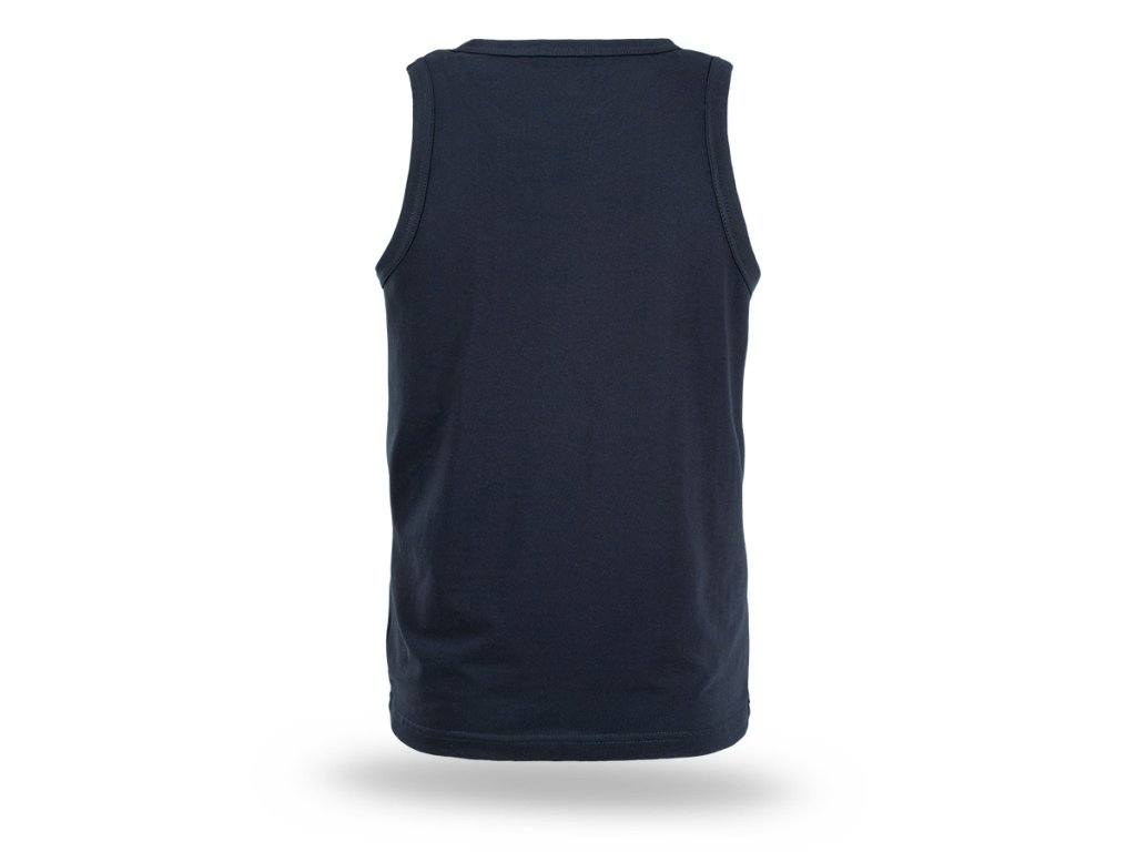 Klasszikus ujjatlan póló egyenes szabással, kerek nyakkivágással és széles karöltőkkel.