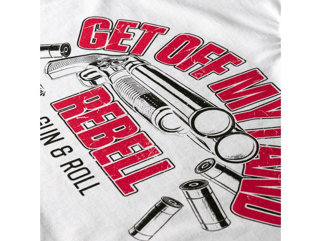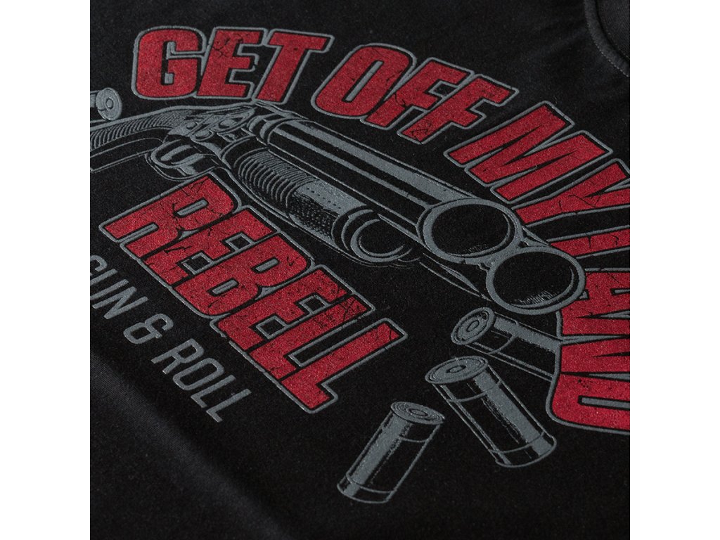 Magas minőségű pamutból készült, amely kényelmet és szabad mozgást biztosít. Az elején egy feltűnő nyomat található fegyver motívummal és a „Get Off My Land REBELL Gun & Roll” felirattal, amely erőteljes, karakteres megjelenést kölcsönöz a modellnek. A hátoldal sima, további díszítés nélkül. Ideális választás melegebb napokra vagy réteges öltözködéshez azok számára, akik kedvelik a merész dizájnt.