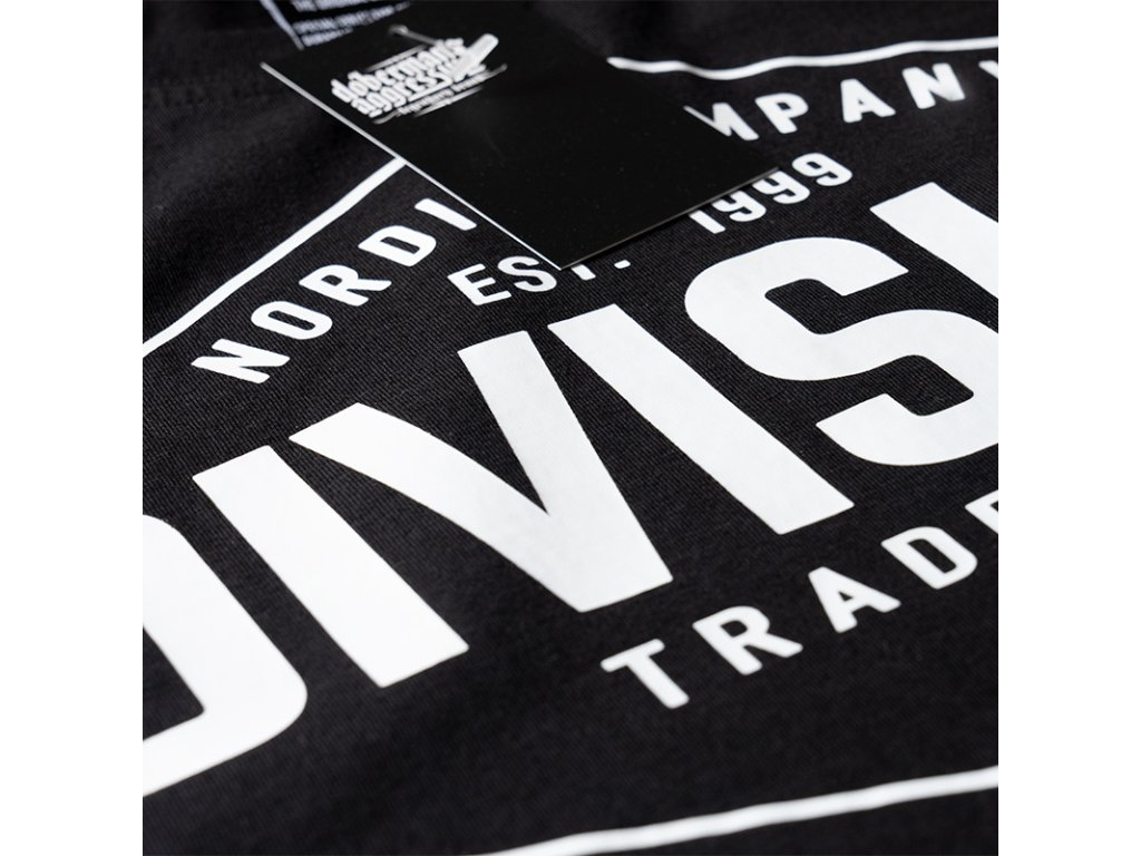 A mellrészen nagyméretű vintage stílusú nyomat „Division” felirattal és „Nordic Company Trademark” szlogennel. Kiváló minőségű pamutból készült, kellemes tapintású és tartós viselet. A minta szitanyomással készült.