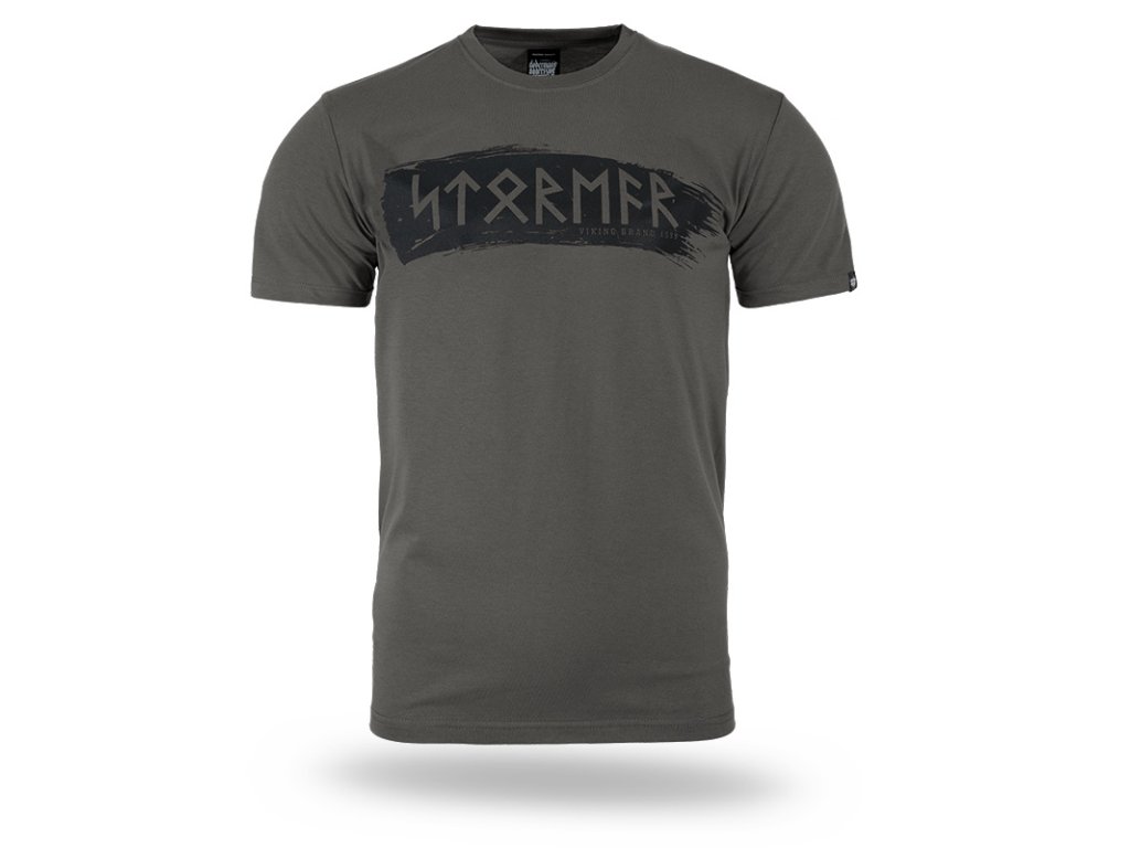 Kiváló minőségű pamutból készült. A mellkason nagy nyomat látható, rúnaszerű felirattal – STORMER – VIKING BRAND 1999. Klasszikus szabású póló, mindennapi viseletre alkalmas.