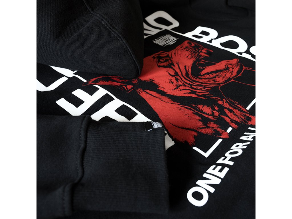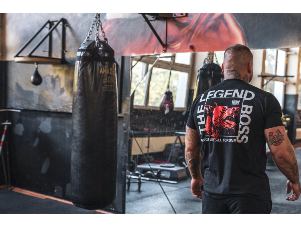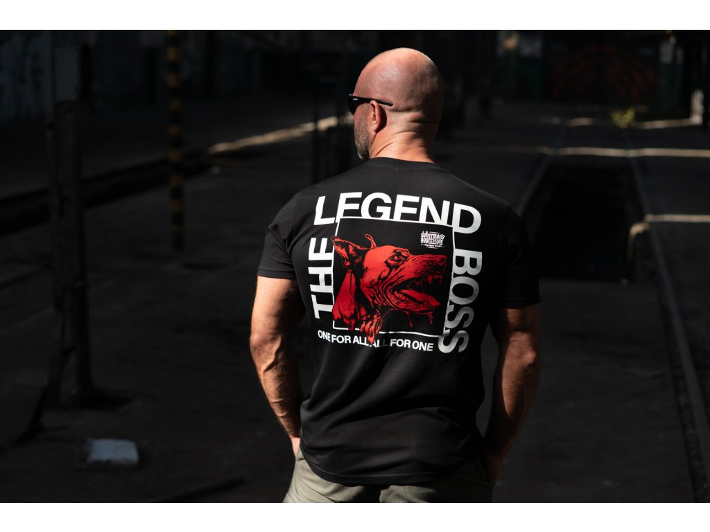 Kiváló minőségű pamutból készült, kényelmes viseletet és tartós nyomatot biztosít. A hátoldalon nagy grafika látható egy dobermannal és a „THE LEGEND BOSS” valamint a „ONE FOR ALL. ALL FOR ONE” feliratokkal. A mellrészen egy kisebb, a fő motívumhoz illő felirat található.