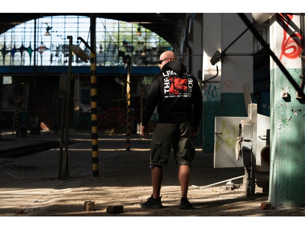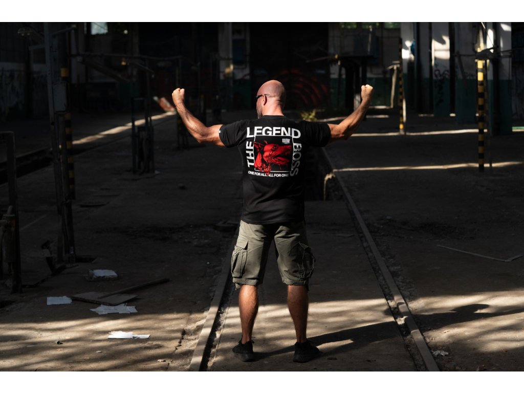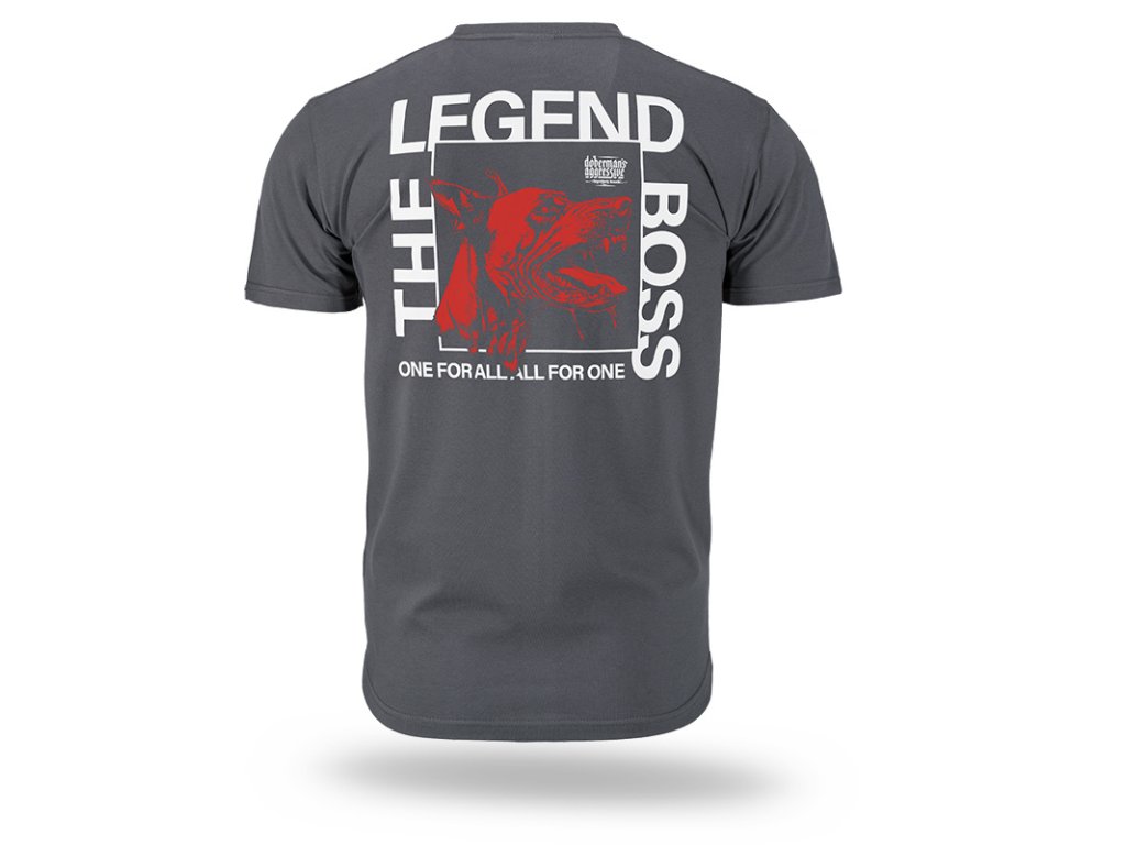 Kiváló minőségű pamutból készült, kényelmes viseletet és tartós nyomatot biztosít. A hátoldalon nagy grafika látható egy dobermannal és a „THE LEGEND BOSS” valamint a „ONE FOR ALL. ALL FOR ONE” feliratokkal. A mellrészen egy kisebb, a fő motívumhoz illő felirat található.