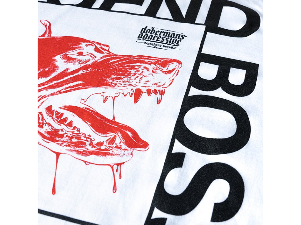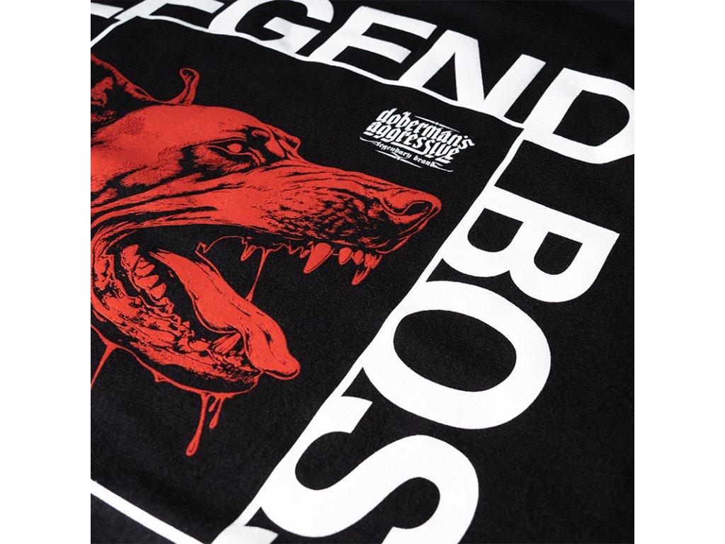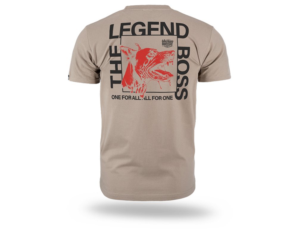 Kiváló minőségű pamutból készült, kényelmes viseletet és tartós nyomatot biztosít. A hátoldalon nagy grafika látható egy dobermannal és a „THE LEGEND BOSS” valamint a „ONE FOR ALL. ALL FOR ONE” feliratokkal. A mellrészen egy kisebb, a fő motívumhoz illő felirat található.