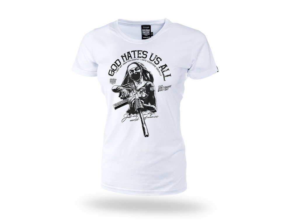 A póló bal ujján egy kis méretű céges logó található. A THE NUN modell a kiválasztottak számára készült. A pólót egy felfegyverzett apáca valamint egy GOD HATES US ALL felirat díszíti, Doberman's Aggressive logóval kiegészítve.