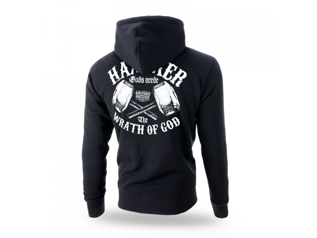 A pulóver bal ujján egy kis méretű céges logó található. A pulóver hátoldalát egy nyomat díszíti, amely keresztezett THOR kalapácsokat és HAMMER WRATH OF GOD feliratot és egy kisebb DOBERMAN'S logót ábrázol. A pulóver elején kisebb méretű identikus minta található.