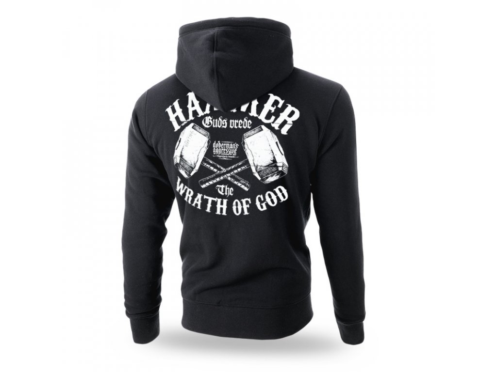 A pulóver hátoldalát egy nyomat díszíti, amely keresztezett THOR kalapácsokat és HAMMER WRATH OF GOD feliratot és egy kisebb DOBERMAN'S logót ábrázol. A pulóver elején kisebb méretű identikus minta található.