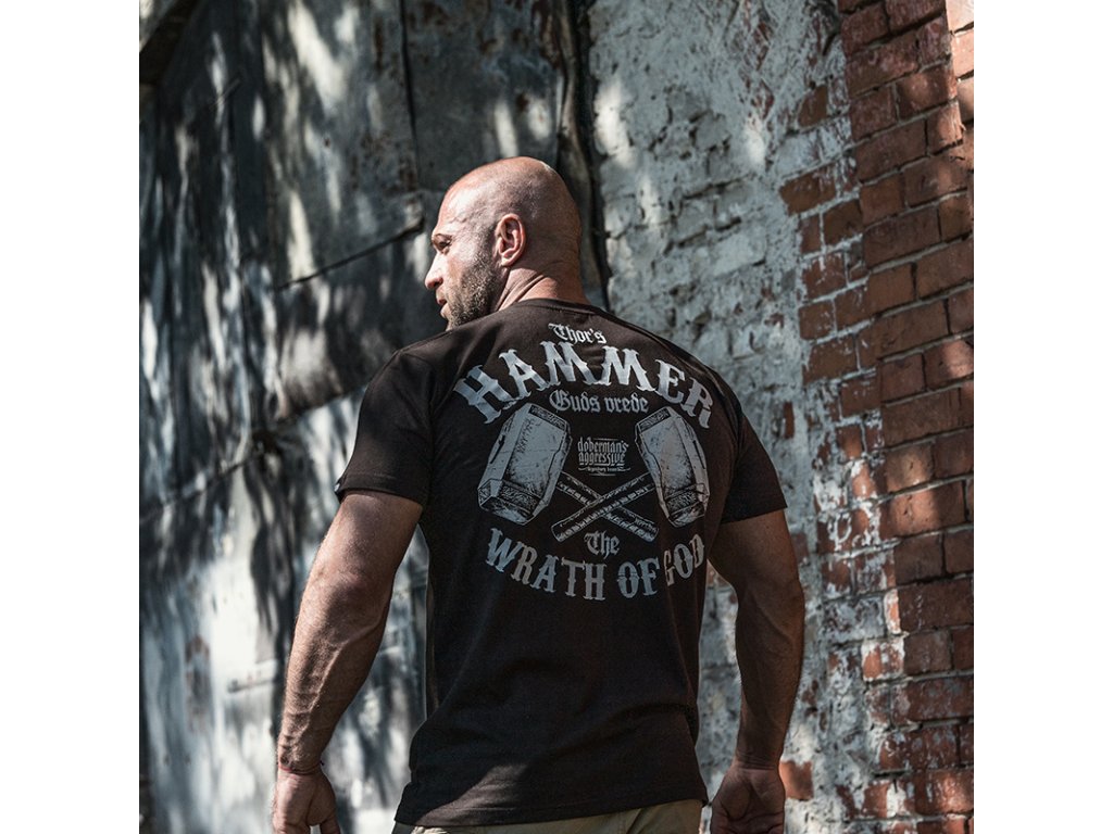 A póló hátoldalát egy nyomat díszíti, amely keresztezett THOR kalapácsokat és HAMMER WRATH OF GOD feliratot és egy kisebb DOBERMAN'S logót ábrázol. A póló elején kisebb méretű identikus minta található.