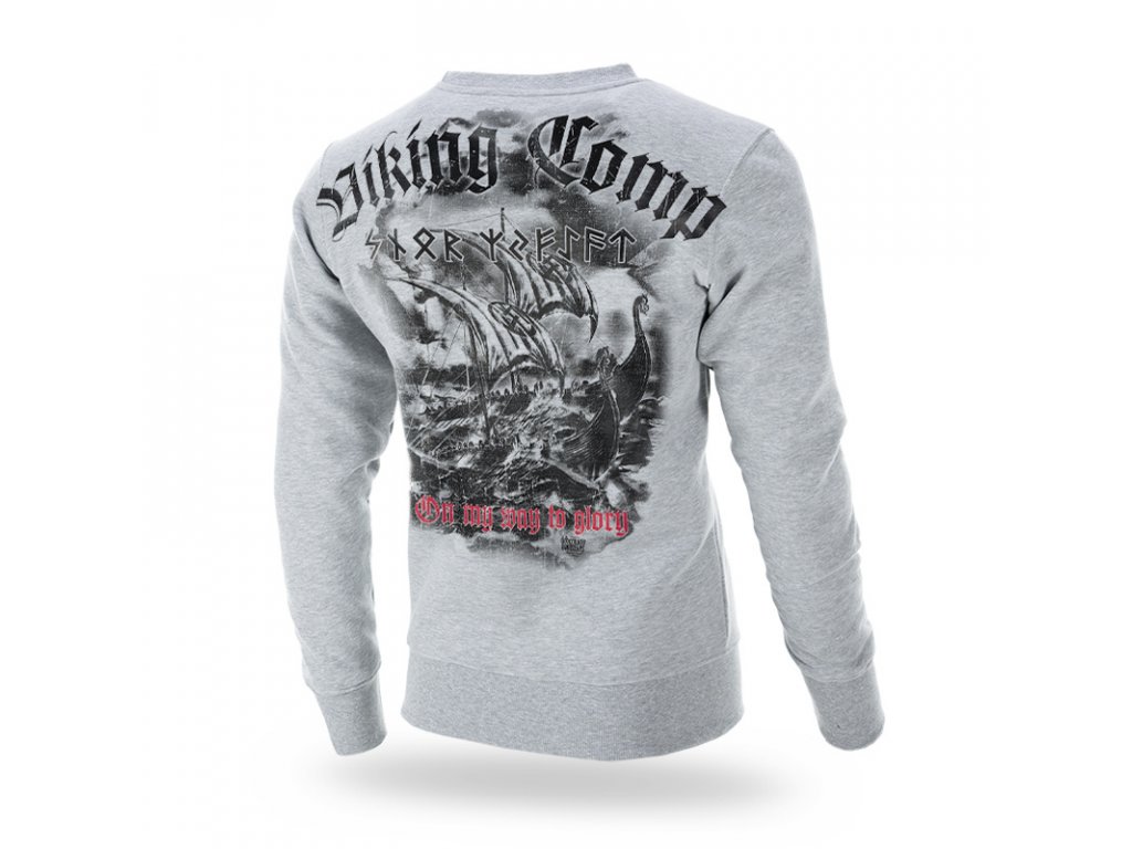 A mellkas bal oldalán egy Viking Comp felirat és egy rovásírásos szimbólum található. A pulóver hátoldalán egy nyomat található, amely viking hajókat ábrázol a viharos tengeren. Fölötte egy nagy Viking Comp felirat és rovásírásos szimbólumok láthatóak.