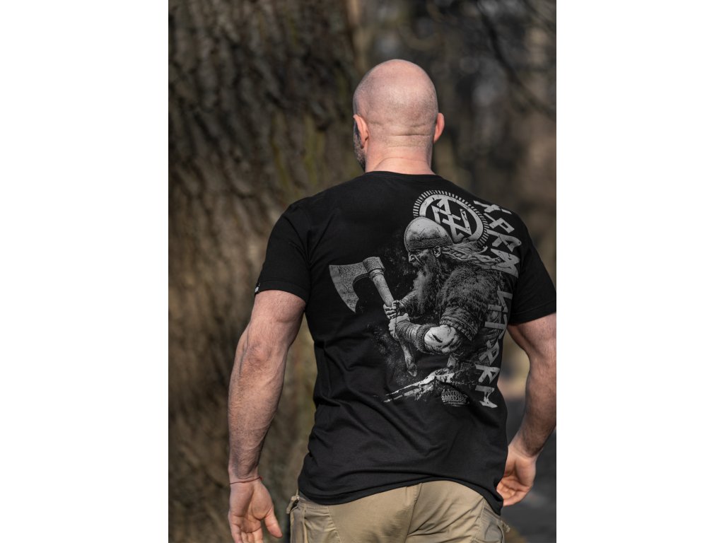 Klasszikus hosszú ujjú póló, kiváló minőségű pamutból. Az elején egy kis nyomat található „STORM” felirattal, rúnás stílusban. A hátoldalon egy nagy, részletes grafika látható, amely egy fejszével felfegyverzett vikinget ábrázol, rúnaszimbolumokkal körülvéve.