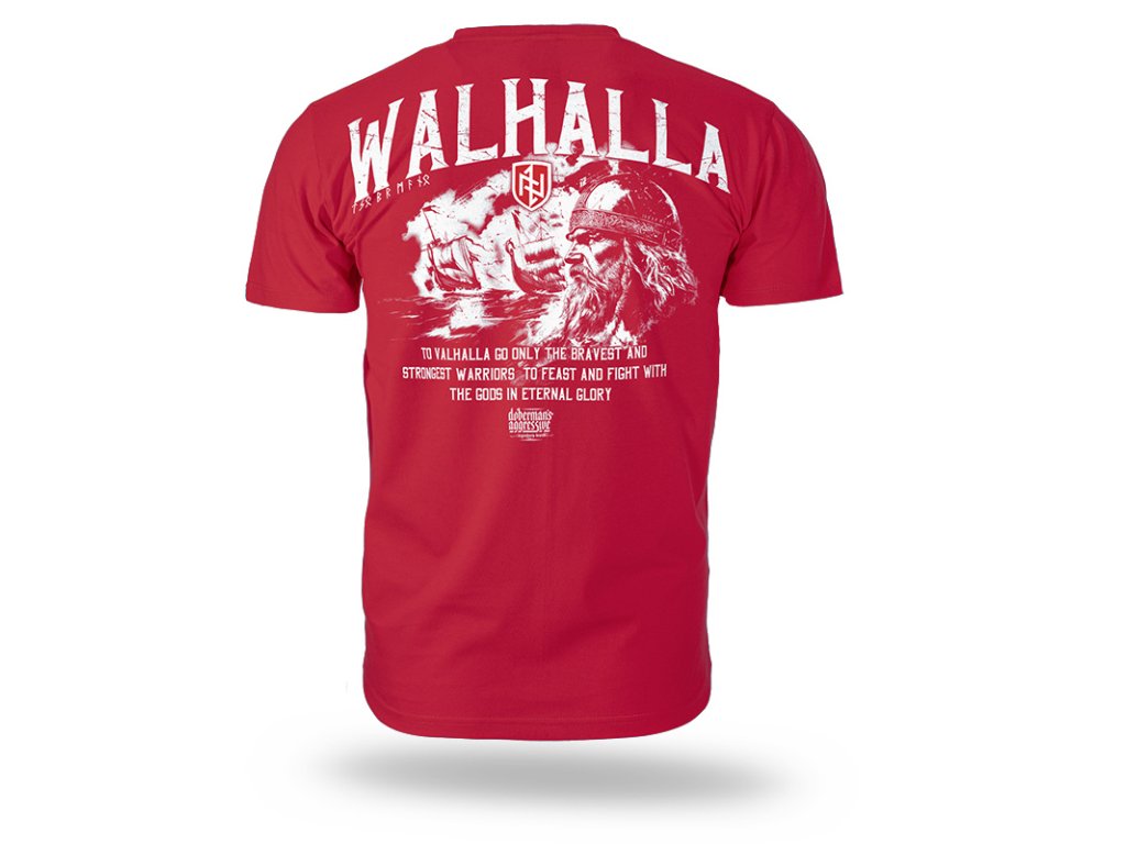 Klasszikus póló kiváló minőségű pamutból, amely kényelmes viseletet biztosít. Az elején egy visszafogott logó látható egy kis címer formájában, amely minimalista jelleget kölcsönöz neki. A póló hátulját egy nagy grafika díszíti, amely egy vikinget ábrázol hajók hátterében, a „WALHALLA” felirattal körülvéve. A dizájnt a következő szöveg egészíti ki: „To Walhalla go only the bravest and strongest warriors to feast and fight with the gods in eternal glory”, amely a skandináv mitológiára utal. Egy modell azok számára, akik értékelik a nyers esztétikát és a viking motívumokat.